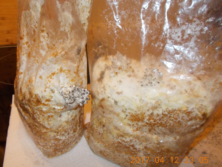 der zweite sack steht im Keller bringt zwar mehr pilze aber blass grau und langsamer die brauchen locker noch eine woche