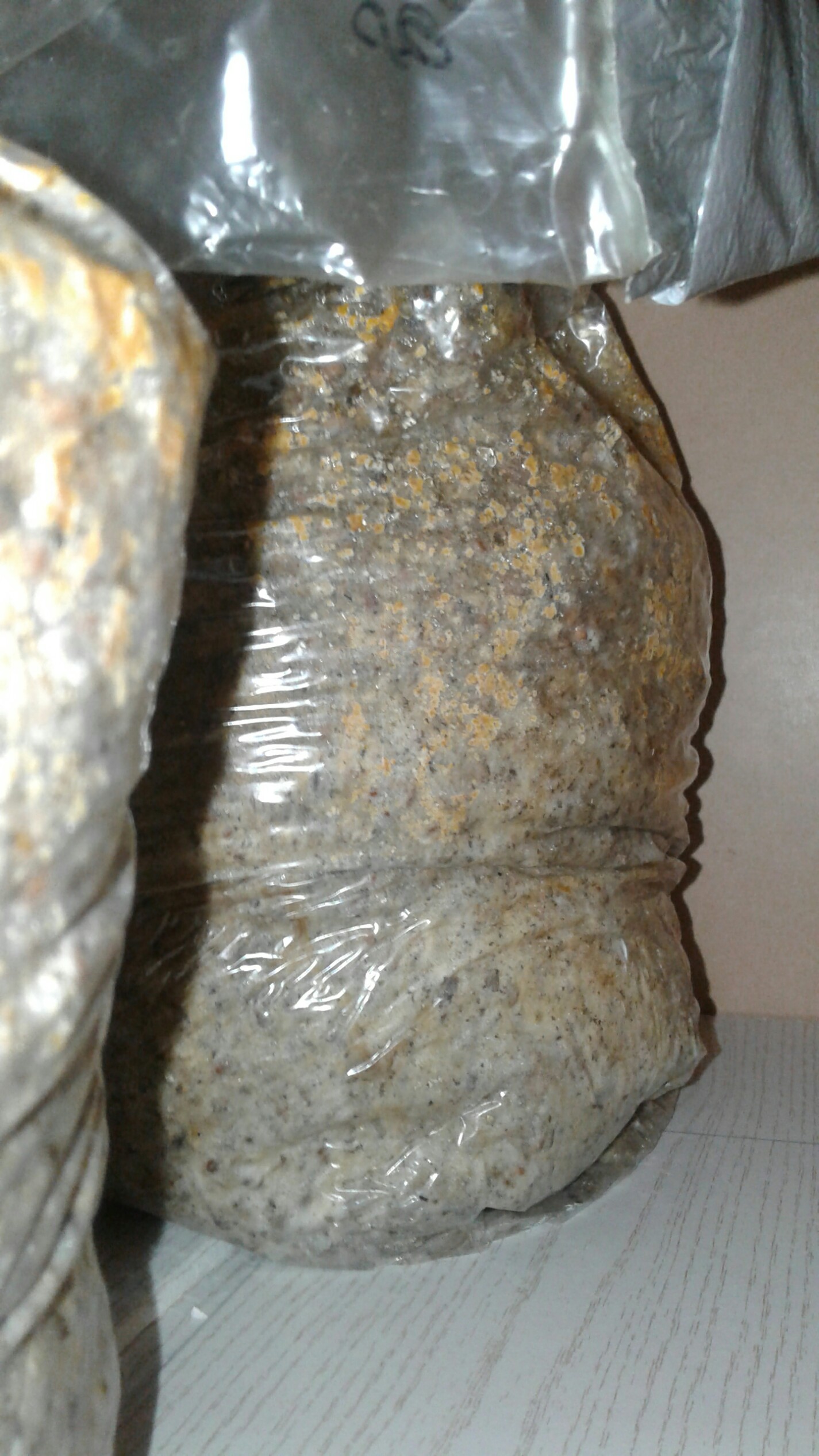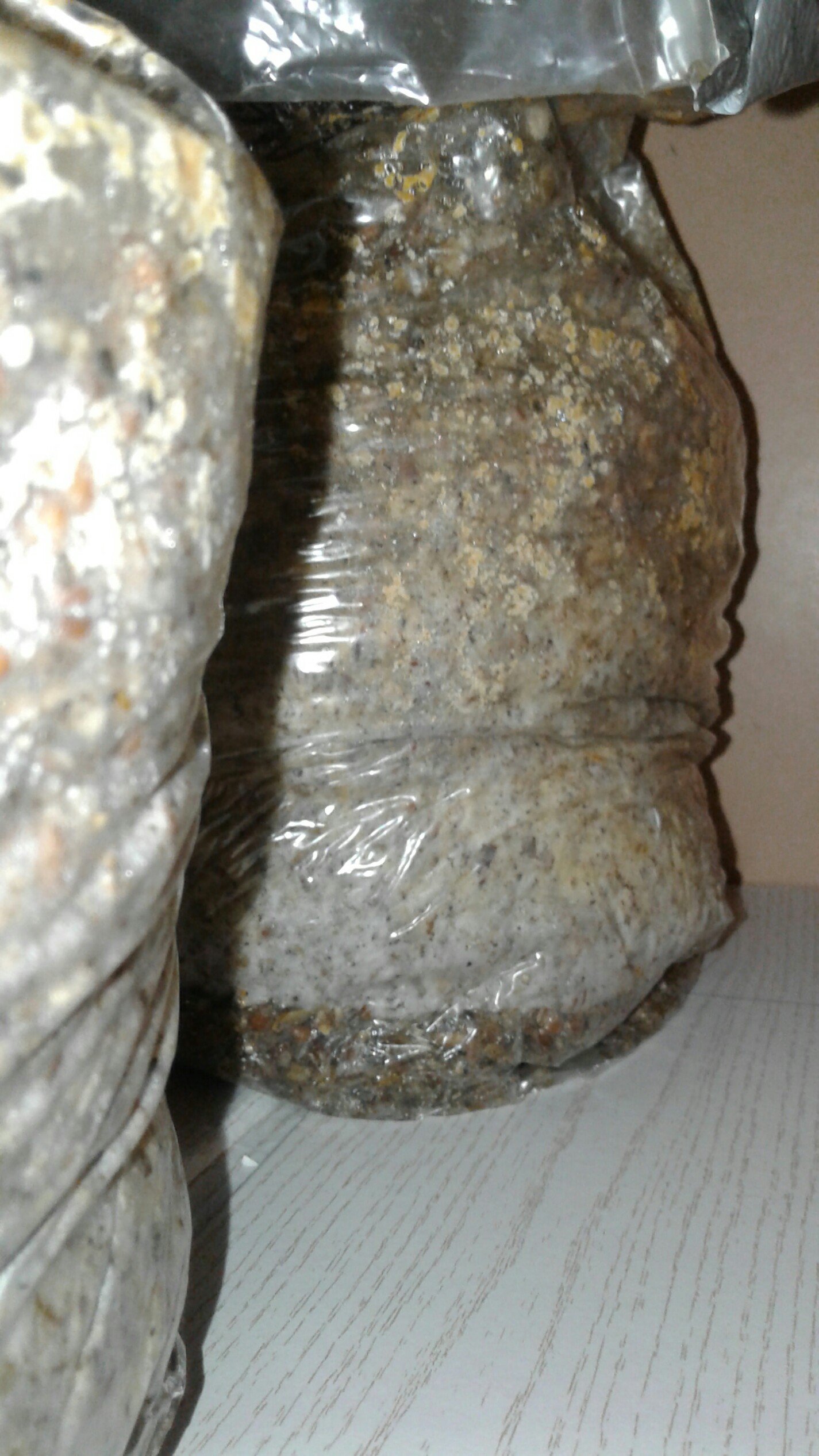 mittlerweile habe ich noch 3 Gläser und 2 unicornsäcke vorbereitet. Diesmal habe ich nur Weizen und Asche als brut ansatz verwendet. obendrauf habe ich sand (spielesand sehr fein und quarzsand etwas grober verwendet.) einmal habe ich auch etwas Erde dazugemixt.bei einem Glas habe ich auch halb verrottet baumblätter verwendet.
