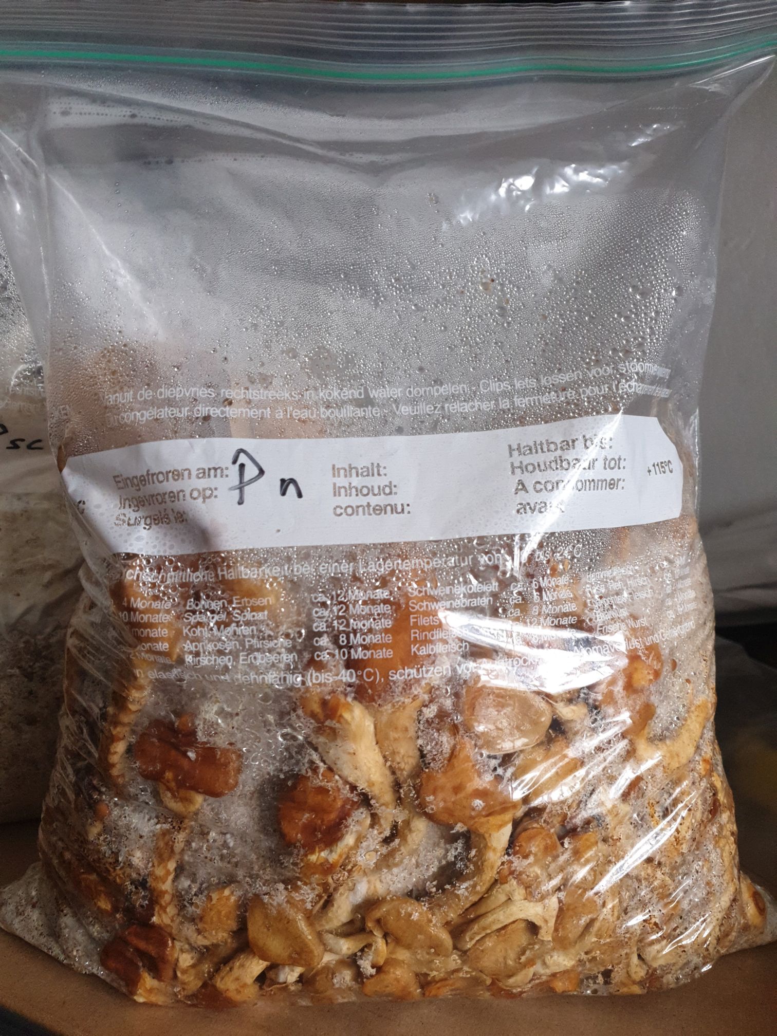So alt sind die noch nicht und ich würde sie gern essen. Die Fruchtungsbox ist aber voll mit Seitlingen und es sind schon vor Wochen Trauermücken eingedrungen. Draußen gibt es wieder Nachtfrost und drei trockene Tage. Tja, einer muss wohl raus.