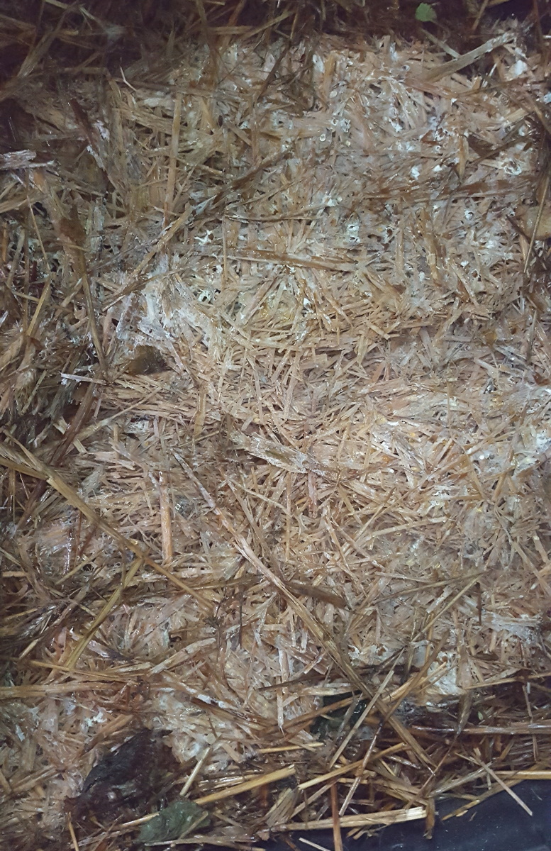 Substrat ist halb Stroh, halb Buchenholzspäne mit Gips.