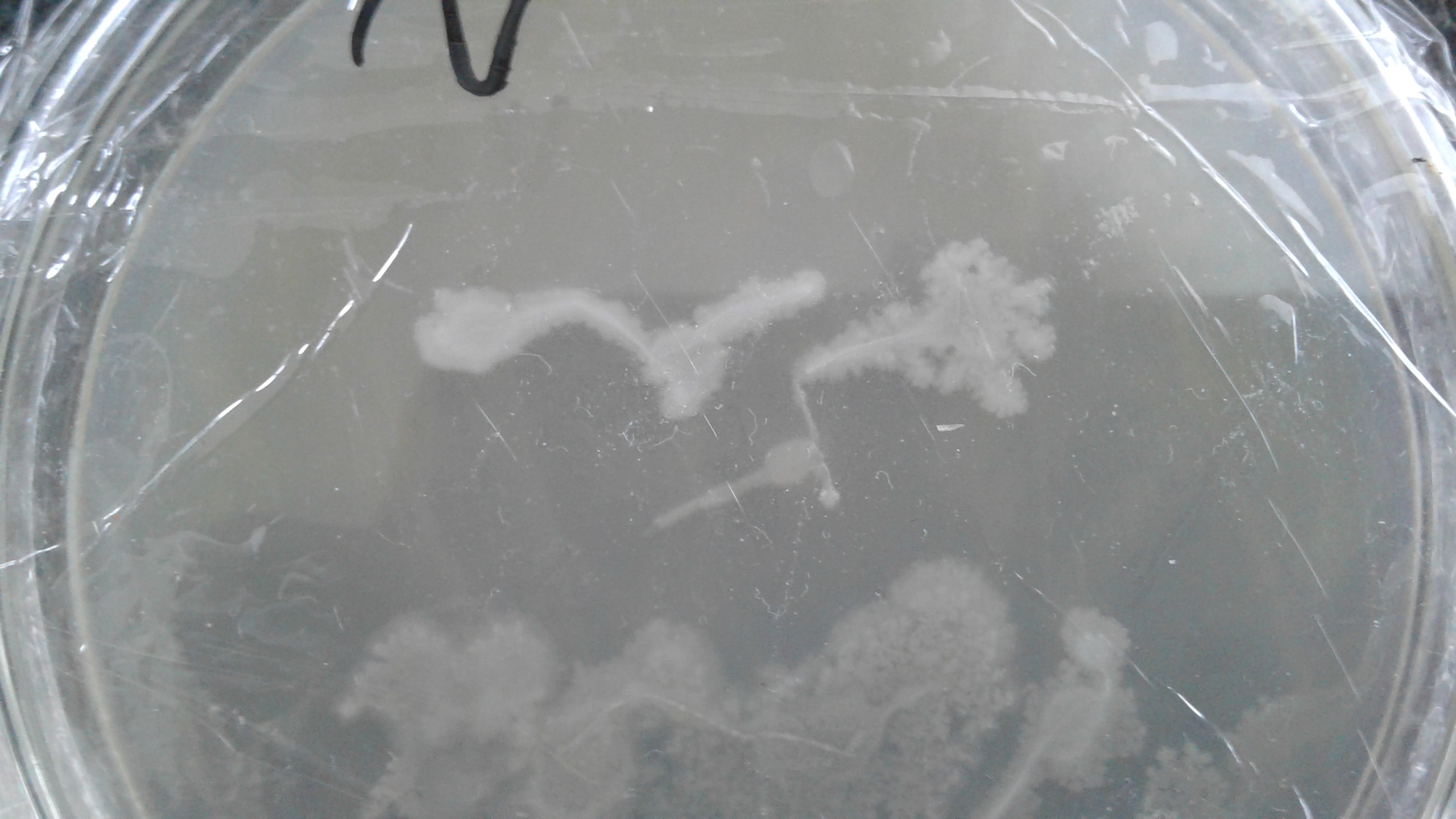 hier mal ein paar Fotos. Die Frischhaltefolie ist jetzt nicht ideal.... na ja.... Und die ersten 3-4 Petris litten unter etwas Kondenswasser. Ich habe ein zick zack Muster gemacht und natürlich immer ein frisches im ddkt sterilisiertes Werkzeug genommen (Klingen oder Nadeln anderes hab isch nisch)mariapilz hat geschrieben: Ich habe 10 Petris. Mindestens 5 werde ich für die Substratbakkis reservieren. Auf die restlichen... hmmm... will ich zum Vergleich andere ziehen... Da fallen mir schon ein paar interessante Orte ein wo ich die finden kann.![]()