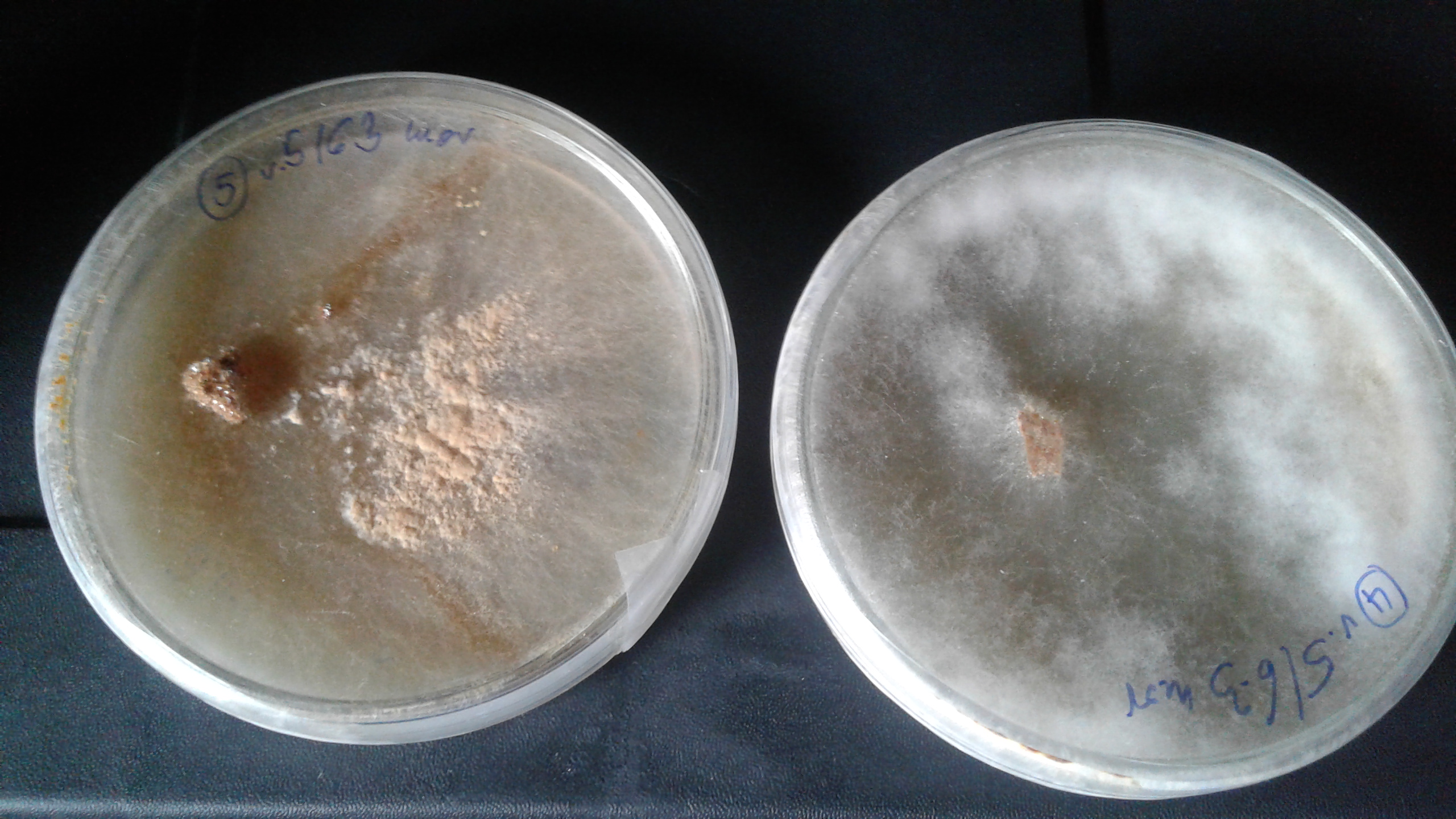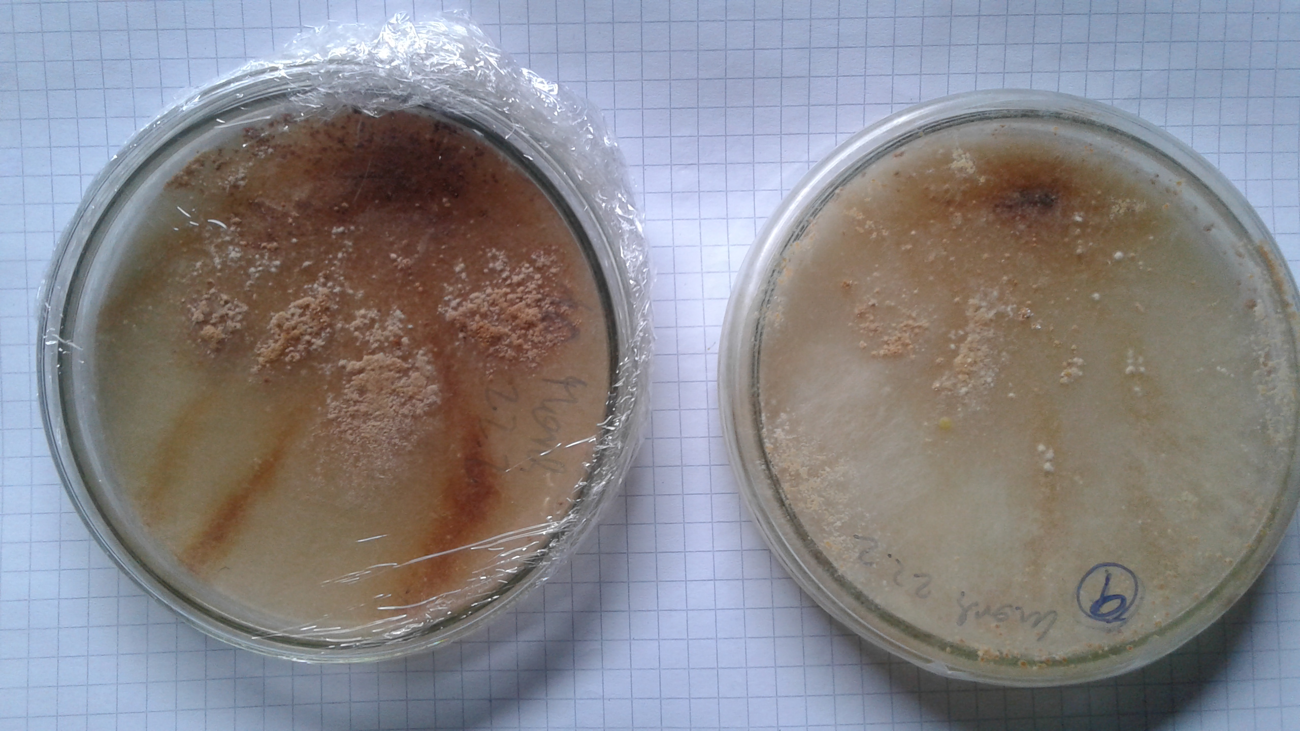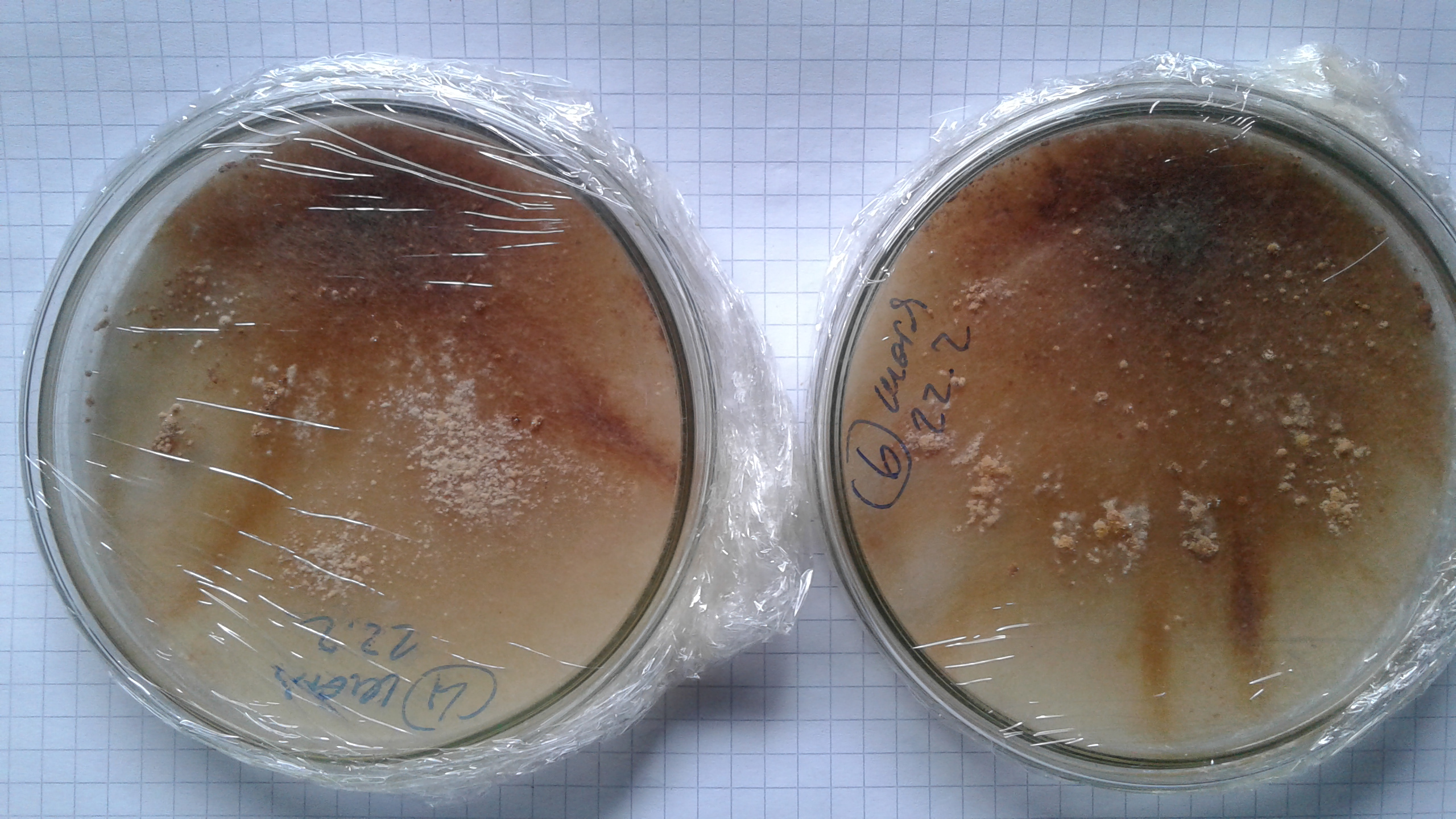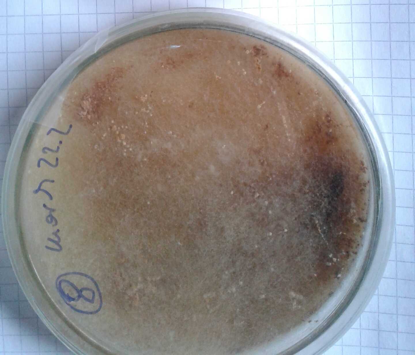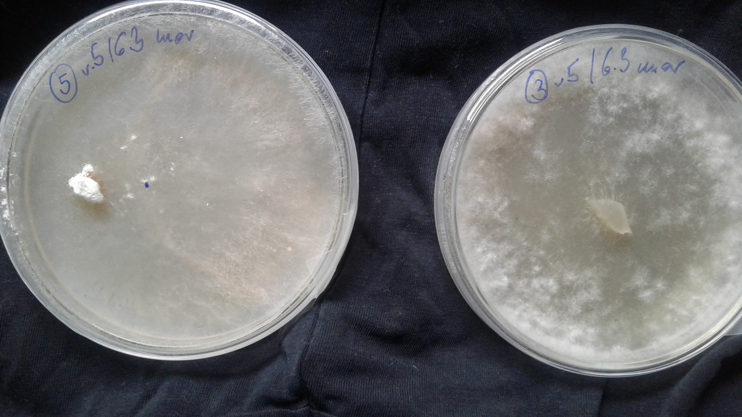 Die stammen vom 6.3. MEA incl Pepton. Beimpft mit Agar von Petri 5 v. 22.2. mal ein Stück mit Minisklerotien mal ohne.