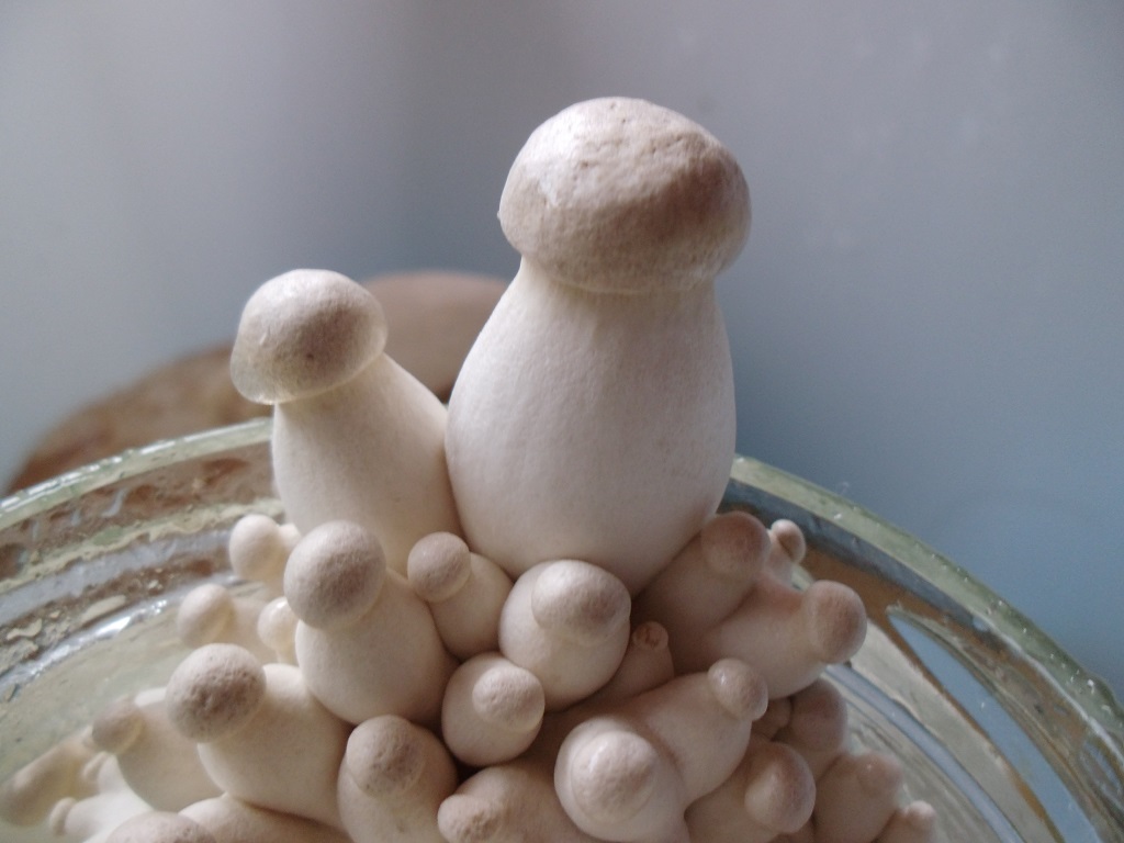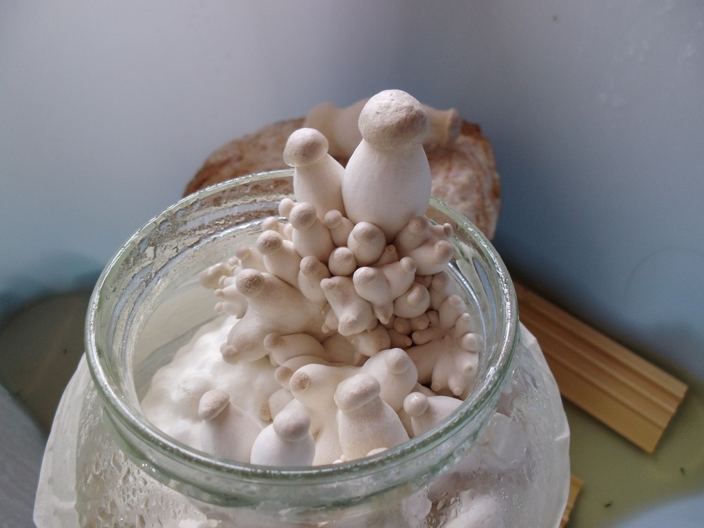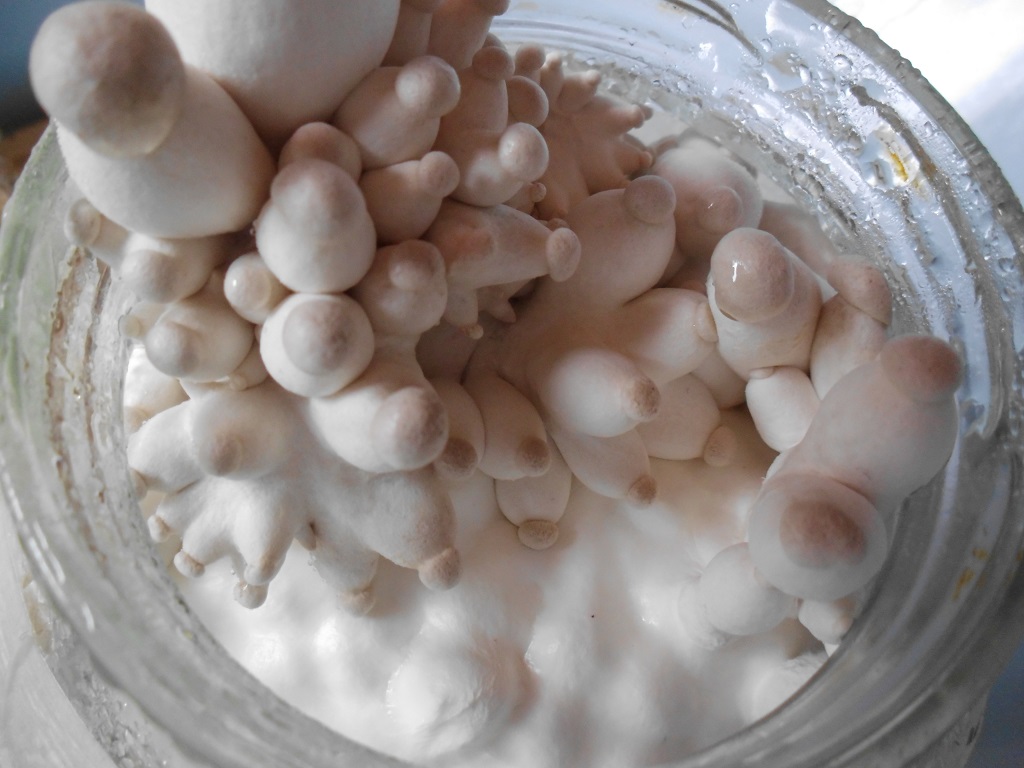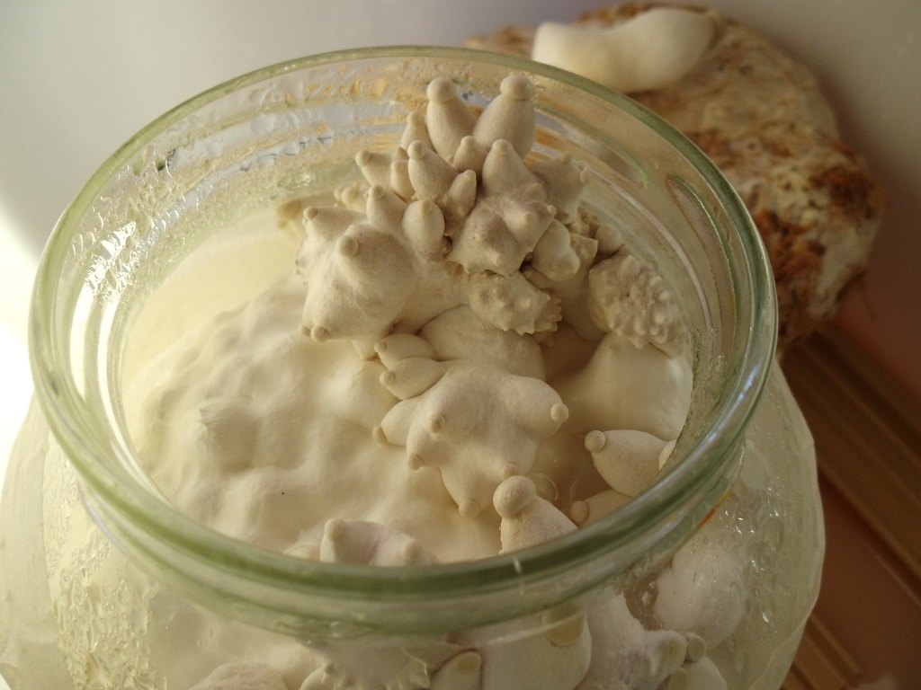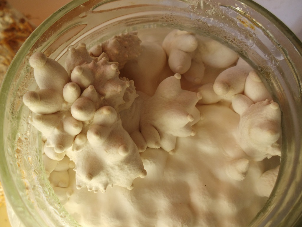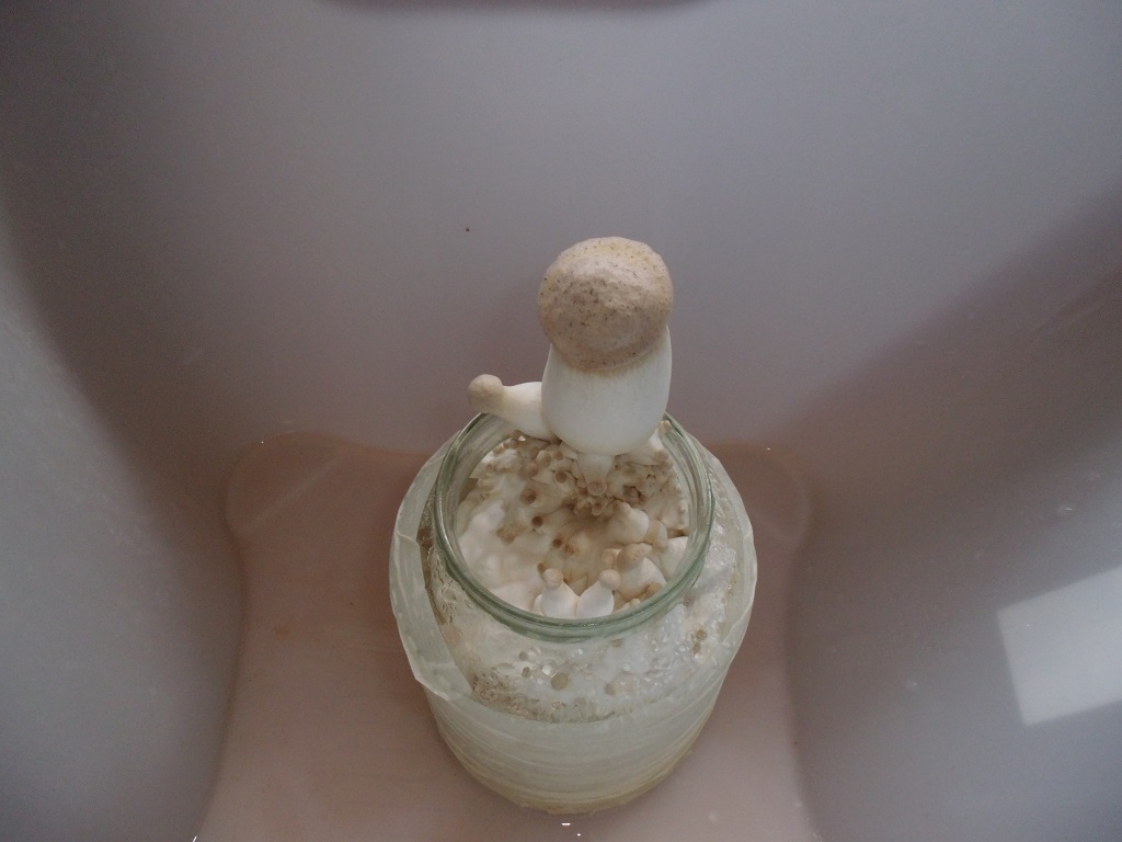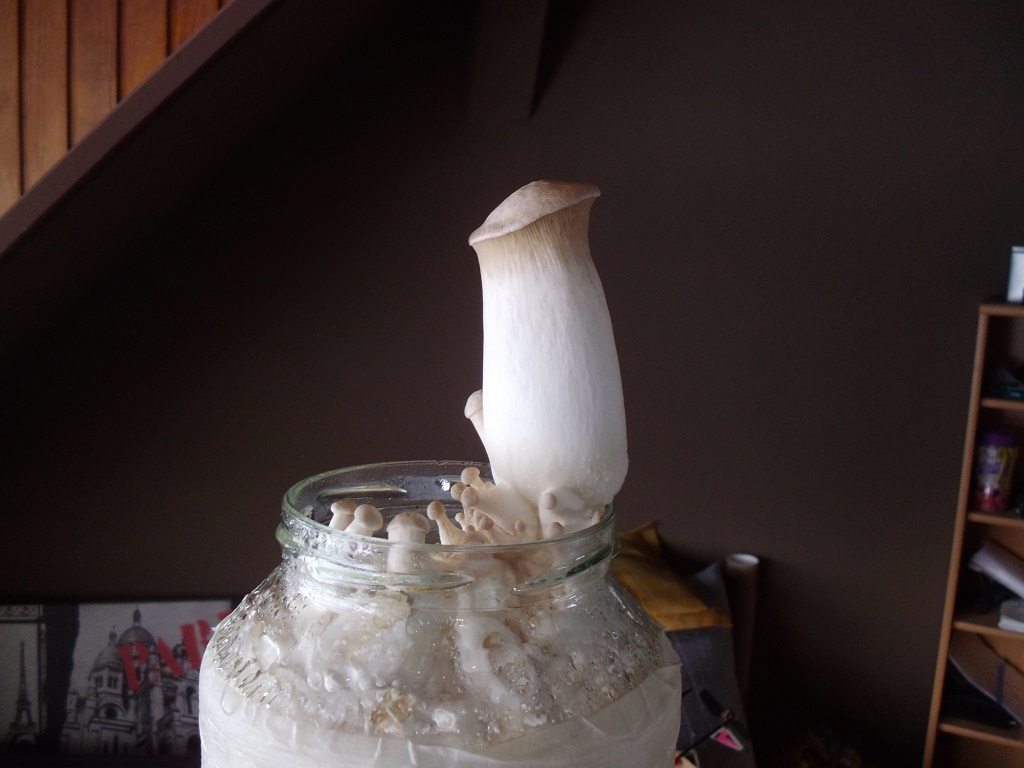 Ich dachte eigentlich dass aus dem Glas mindestens 5 Große Pilze herauswachsen. So wie es zurzeit aussieht ist es nicht gerade lukrativ. Hab leider kein aktuelles Bild.