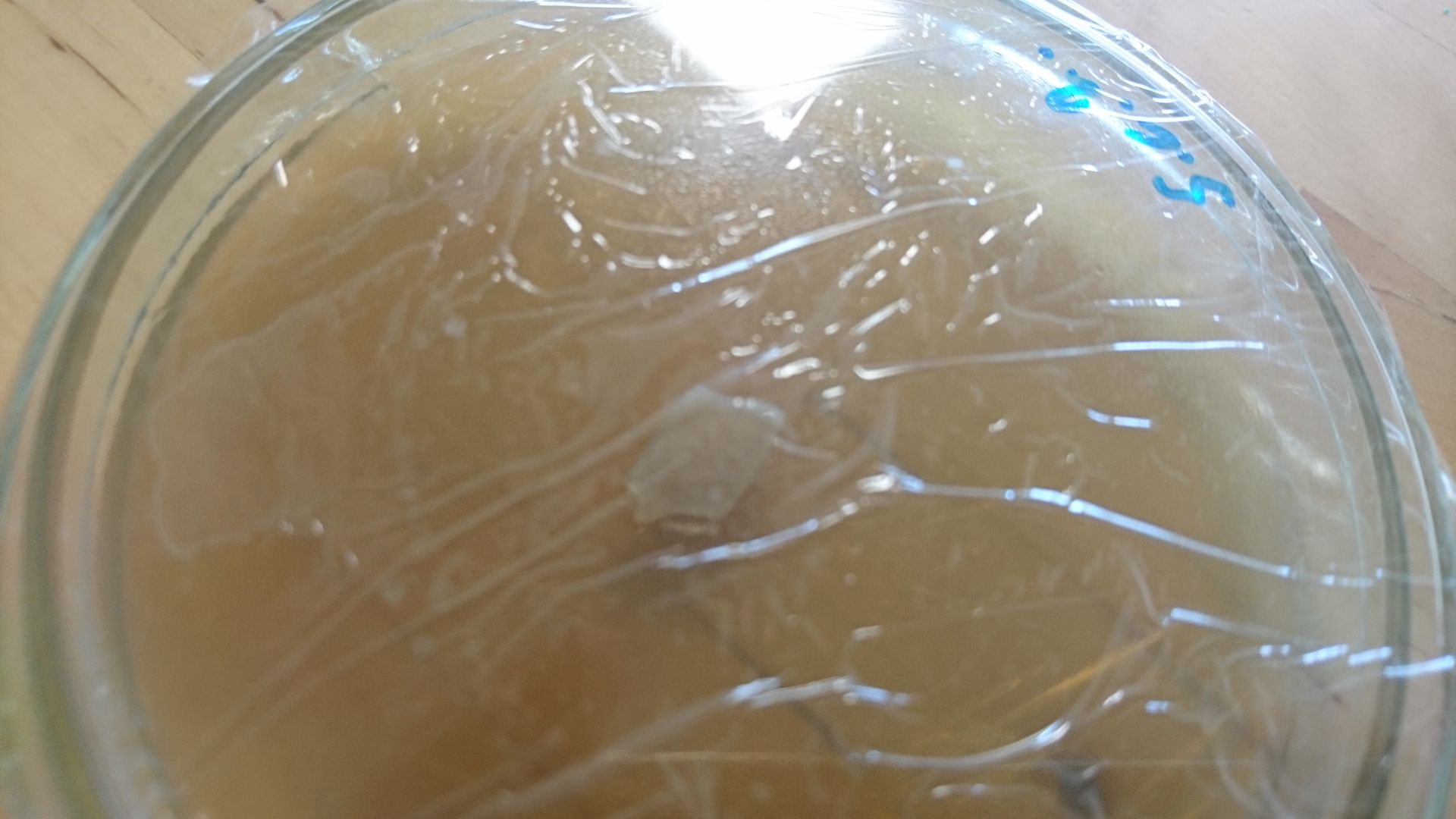Ich hab zwei Kulturen angelegt und von Gel/Agar beimpft. Sie ist zwar aufs Substrat gewachsen aber es ist relativ langsam was da vor sich geht. Irgendwas passt nicht.