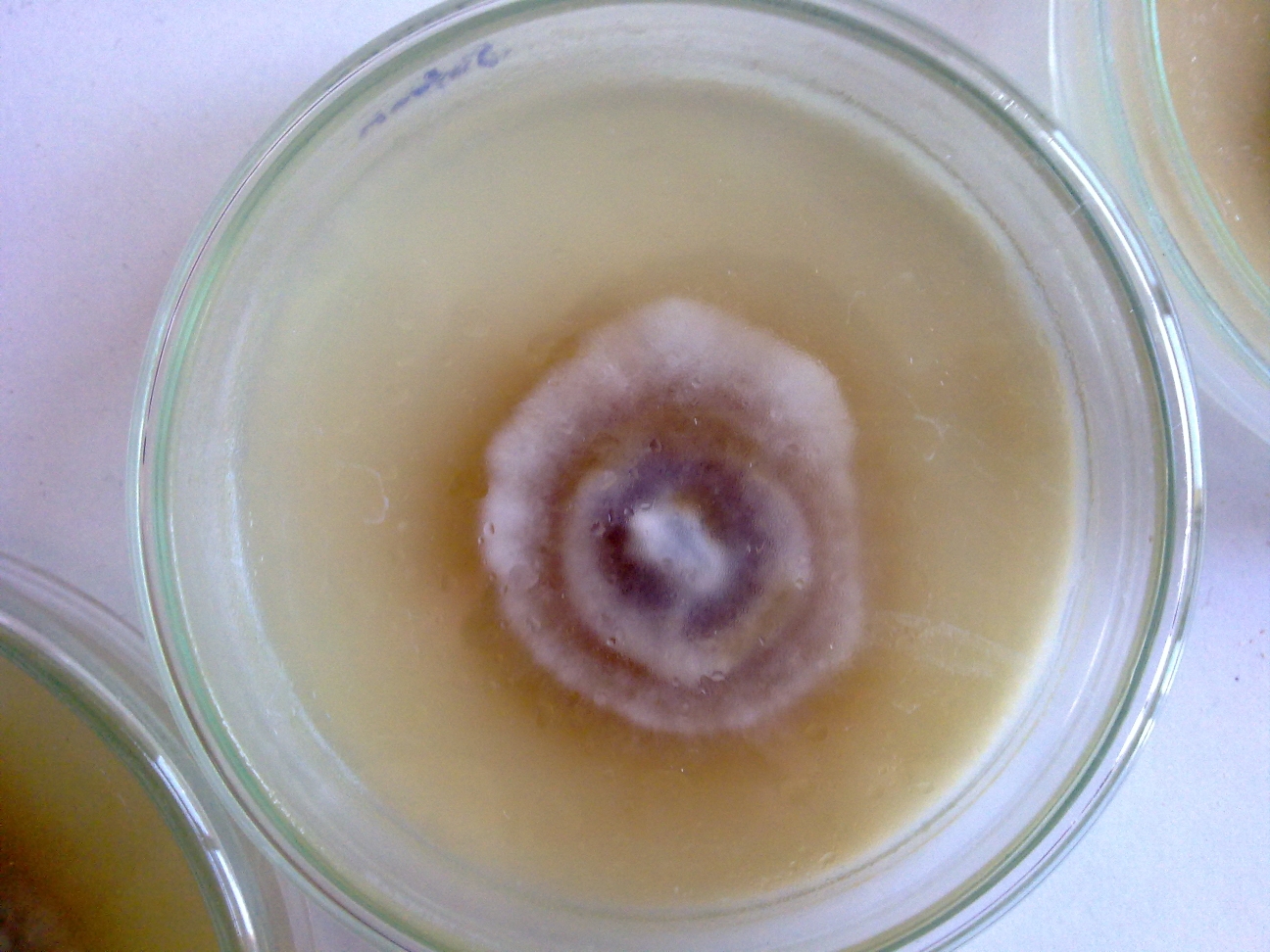 Habe letztens nochmal einen Pilz vom gleichen Fundort geklont, um nochmal das Mycel zu vergleichen. Die neuen Klone zeigen zwar wieder nur minimales Wachstum, Aussehen und Geruch passen aber, also gehe ich mal davon aus, daß das schnelle Mycel immer noch vom Safranschirmling ist und nicht etwa eine Austernkonti.