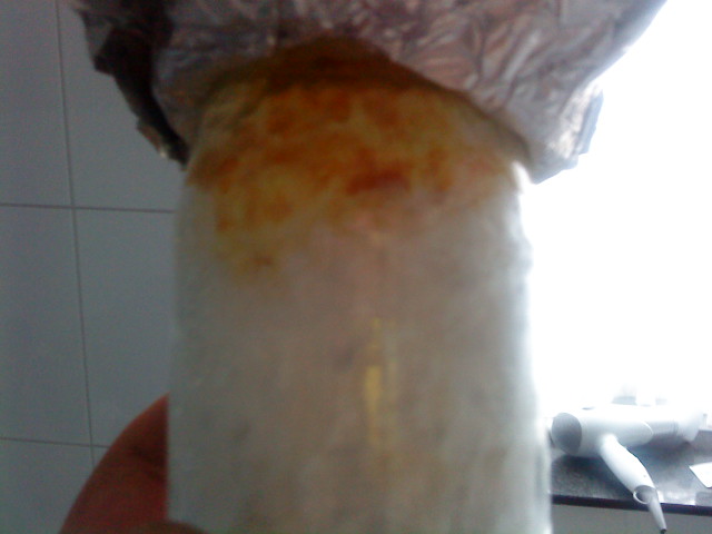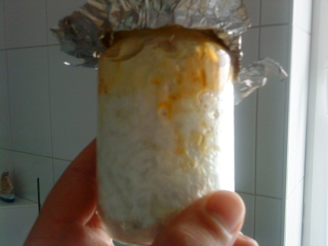 gefärbt bei 2 gläsern war das so bei dem austernmycel ist es weiß geblieben