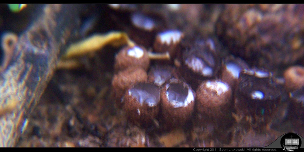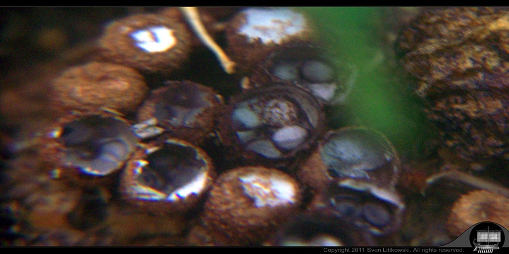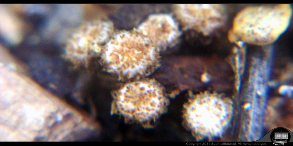 Nun fallen mir kleine trichter- oder becherförmige Gebilde auf, die ich als Pilze deuten würde. Aber was für Pilze sind dies? Diese Gebilde sind maximal sieben bis acht Millimeter hoch, und in Brauntönen. Ich sollte dazu sagen, daß ich in Jamaica lebe.