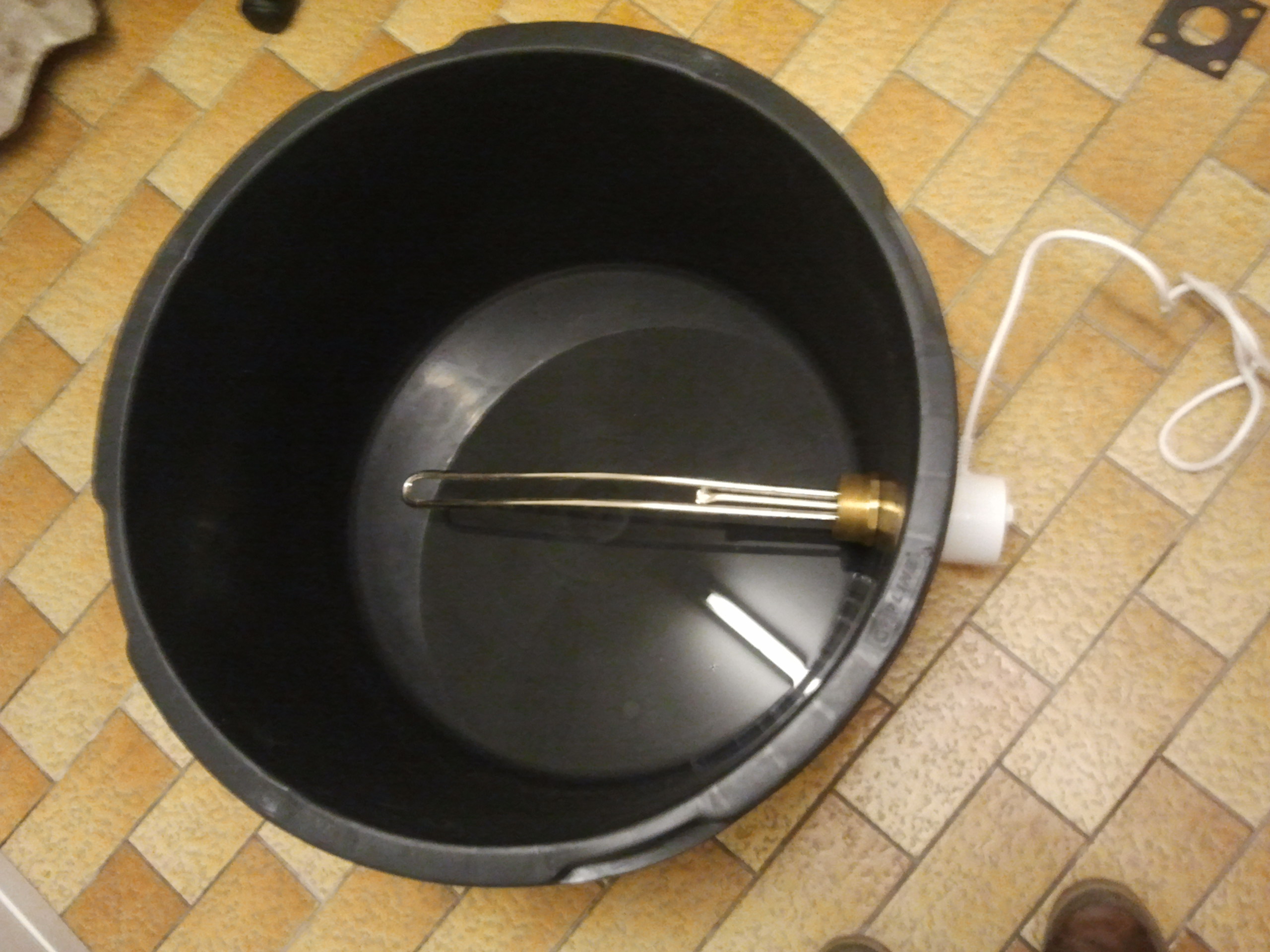 In den Maurerkübel habe ich einen Heizstab eingebaut und anschließen von außen isoliert...