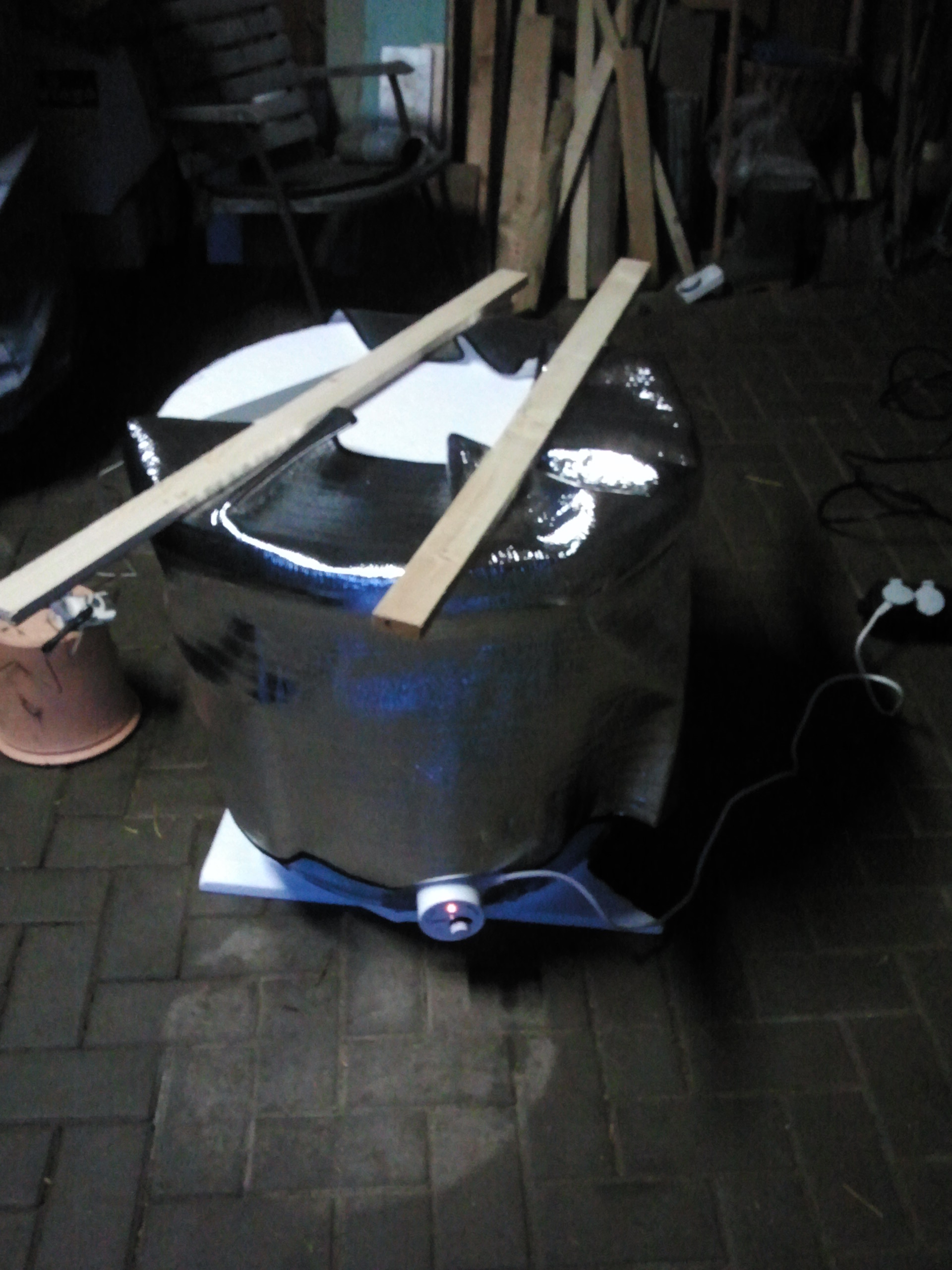 Komplett verpackt sieht das dann so aus: Nach nun 2 Tagen Betrieb ist die Temperatur auf 63° gestiegen, zuheizen brauchte ich nur am ersten Tag.