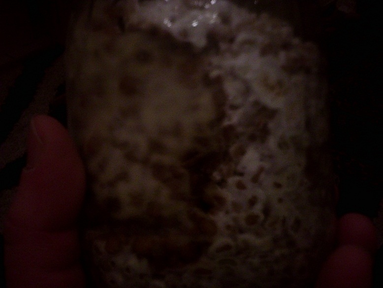 Auf jedemfall ist im diesem Glas der Shiitake sehr schnell am wachsen, hat den Boden schon erreicht, die anderen zwei Gläser haben geradeeinmal ein Drittel geschafft.