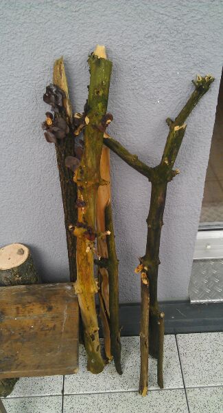 Äste mit Ohren :wink: habe ich diesen Winter auch gesammelt. Wobei die Ohren eher für den Wok waren, habe ich die Äste an sich haben wollen. Mein Ziel, das Mytzel aus dem Holz auf ein Substrat zu ziehen. Ich habe also den Ast/Äste in fingerdicke Scheiben geschnitten und in ein Substrat aus 1.: Buchenschnippsel/Kaffeesatz 2.: Buchenschnipsel/Kaffeesatz/Weizenkleiegemisch gelegt. Das war am 17.2. und ich muss sagen das der sehr, sehr langsam wächst aber es geht. :mrgreen: