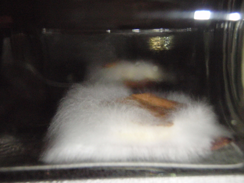 Sodala, hab auf die Schnelle ein paar Fotos gemacht. Es sind jetzt schon deutliche Unterschiede in der Wachstumsgeschwindigkeit feststellbar: am langsamsten gehts bei den Buchenbriketts, gefolgt von den Buchenspähnen, dann kommt etwa gleich auf Karton und Strohpellets. Aber zur absoluten Überaschung scheint dem KS Apfelholz vorzüglich zu schmecken. Hab einfach 2 Chips eingeweicht, ein Stück KS dazwischen und siehe da nach jetzt 3 Tagen... Auf den anderen Bildern erkennt man leider nicht wirklich viel, aber die Stückchen strecken ihre Fühler aus. Hab übrigens nur ein Scheibchen aus dem Stielinneren zerhackt und in die jeweiligen Substrate gemischt.