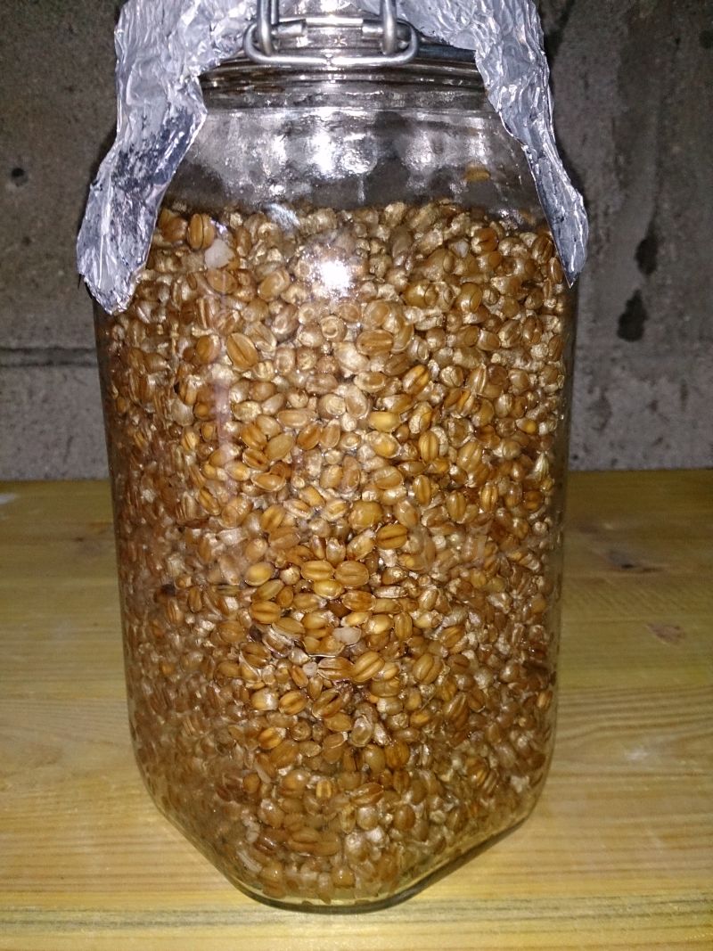 Ich habe es einfach satt jedesmal matschige Körner für die Brut zu haben. Deshalb habe ich mir überlegt die Körner über Nacht einzuweichen, danach das Wasser abzuschütten, und dann ohne zusätzliches Wasser im DDK zu sterilisieren. Ich denke durch das Einweichen über Nacht benötige ich kein zusätzliches Wasser mehr beim sterilisieren.