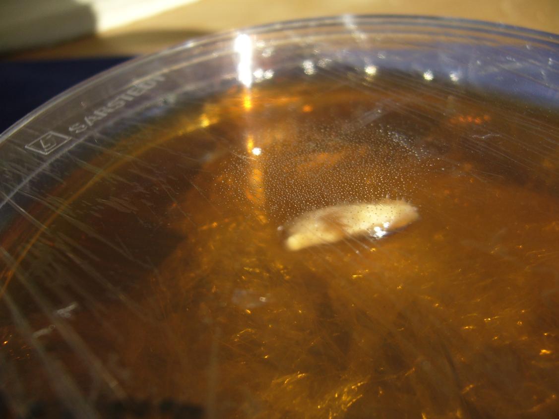 Es war echt schwierig, das Pilzchen zu sezieren. Ob das was wird? Die nächsten Tage werden's zeigen.