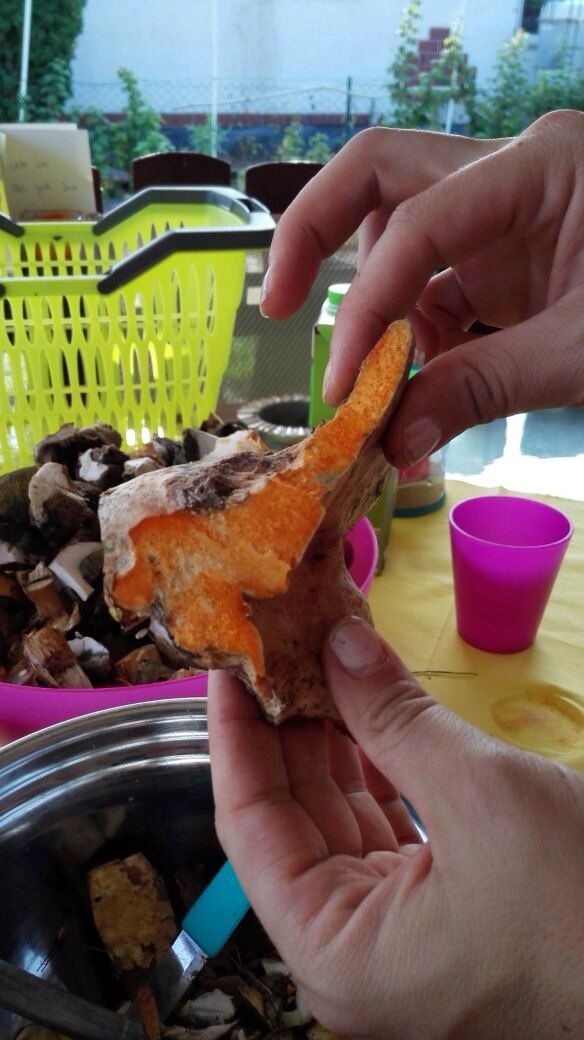 Der Pilz ist auch richtig fest und riecht pilzig