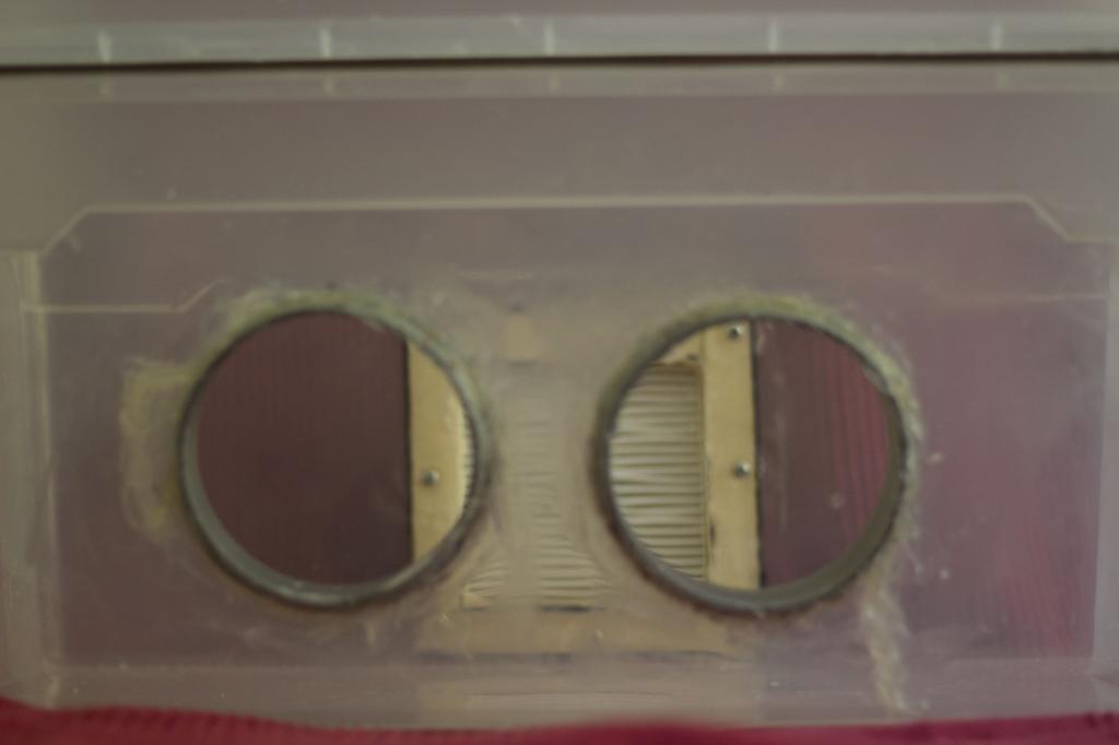Die plastikrohre zurechtschneiden mit heisskleber fest machen. Filter in den holzrahmen mit heisskleber fest kleben und drauf achten das die ganze luft durch den filter geht. Keine kleinen loecher lassen. Alle ritzen im holz mit heisskleber vollmachen. Loecher bohren mit kleinen schrauben das holz dranmachen mit dem silikon abdichten.