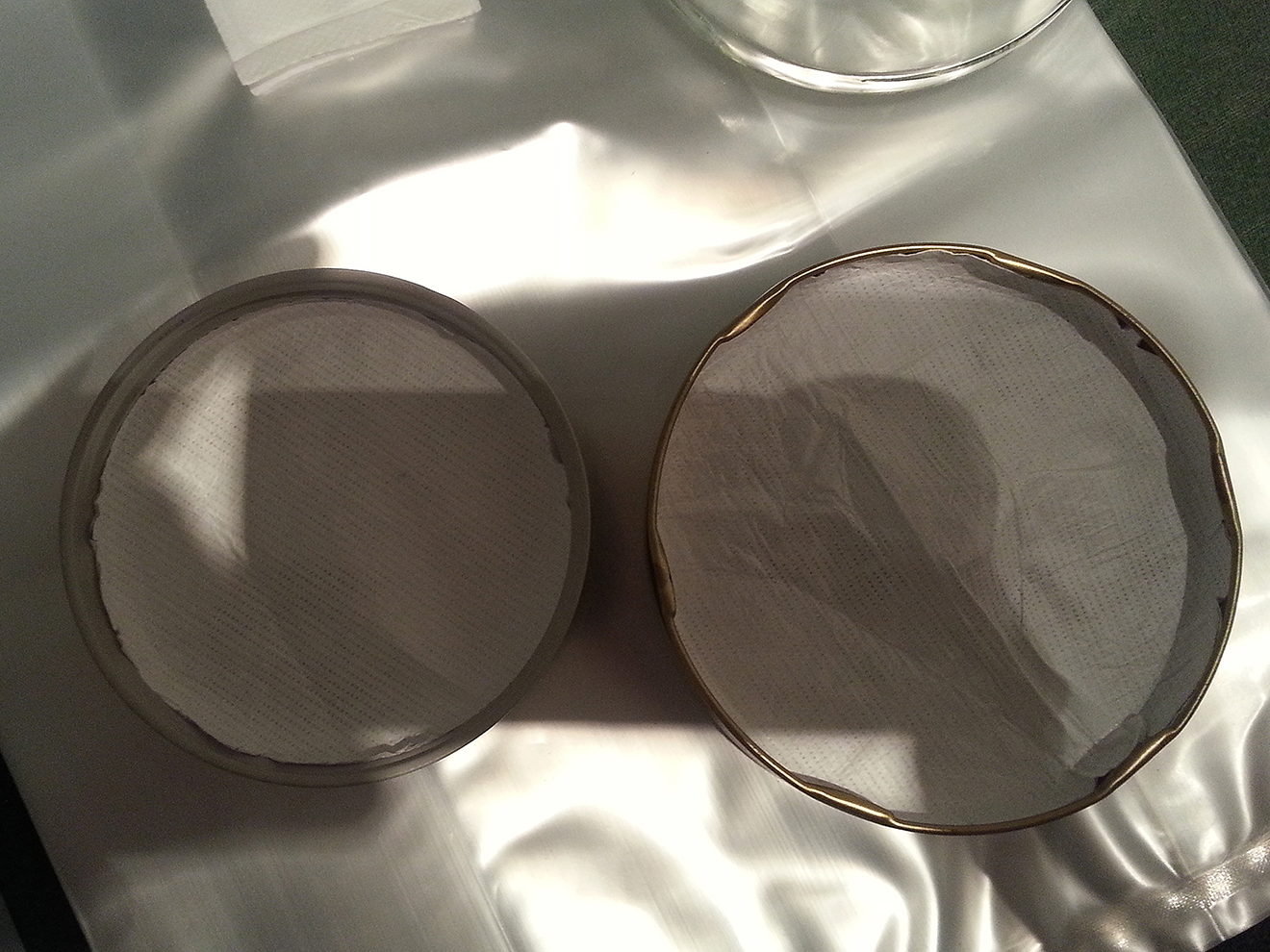 Mich interessiert jetzt, ob es ausreicht dieses Filterpad von innen gegen meine selbst gebohrten Deckel zu legen (siehe im Bild linker Deckel)