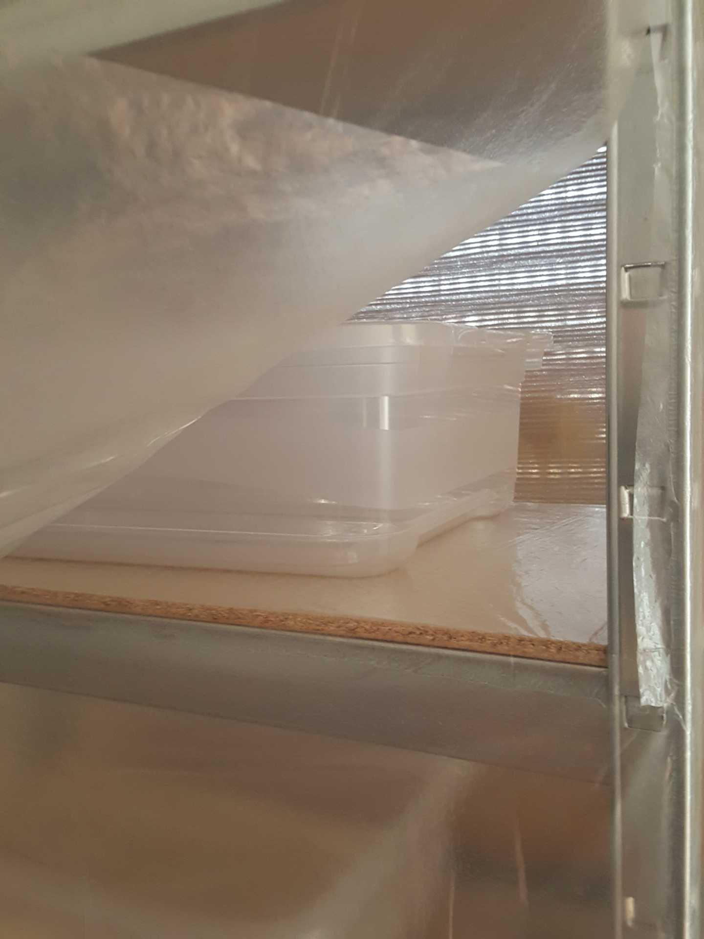 Die Steuerung muss noch warten, dann werde ich aber auch CO2 messen und (über Frischluftzufuhr) regeln. Ich habe einen einigermaßen preiswerten Sensor gefunden, der die hohe Luftfeuchtigkeit hoffentlich überlebt (eigentlich nur bis 95% rel. LF, keine Kondensation). Für die Heizung habe ich ein PTC-Element vorgesehen, weiß nur noch nicht, wieviel Leistung (Watt) es haben soll. Da die Umgebung im Winter 18-20° Celsius hat, braucht es wohl (für manche Arten) ein paar Watt und am besten auch eine Isolierung. Im Sommer brauche ich vermutlich gar keine zusätzliche Heizung. Kommt natürlich auch auf den Pilz an. Bei den Arten, die einen Kälteschock brauchen, kann es schwierig werden. Eine Kühlung werde ich aber nicht einbauen, allenfalls die Säcke einige Zeit kalt stellen. Zum Regeln von Temperatur und Luftfeuchtigkeit werde ich wohl mehrere Sensoren verbauen: einer oben, einer unten und einer außen.