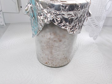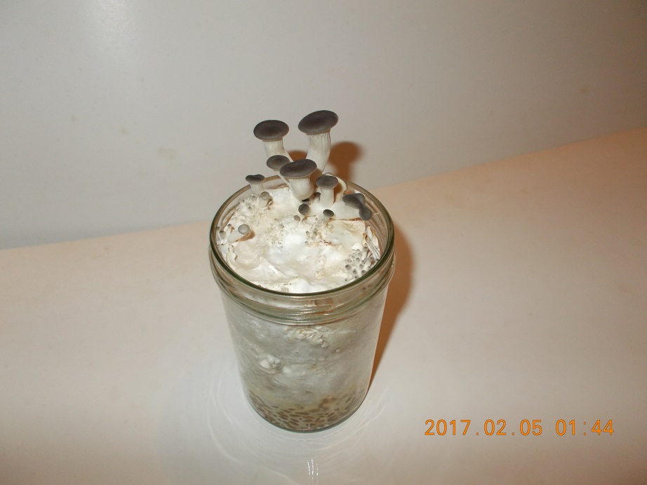 ja das ist ein glas mit körnerbrut angefüttert mit Strohpellets der Kräuterseitling fruchtet überall bekomm ihn nich mehr raus passiert mit öfter habe auch gläser mit austern wo das so is aber schmecken trotzdem