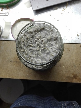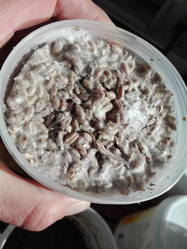Da bei mir im Glas etwas pampiger Satz entstand, wächst mein Myzel etwas langsamer (glaube ich auf jeden Fall
