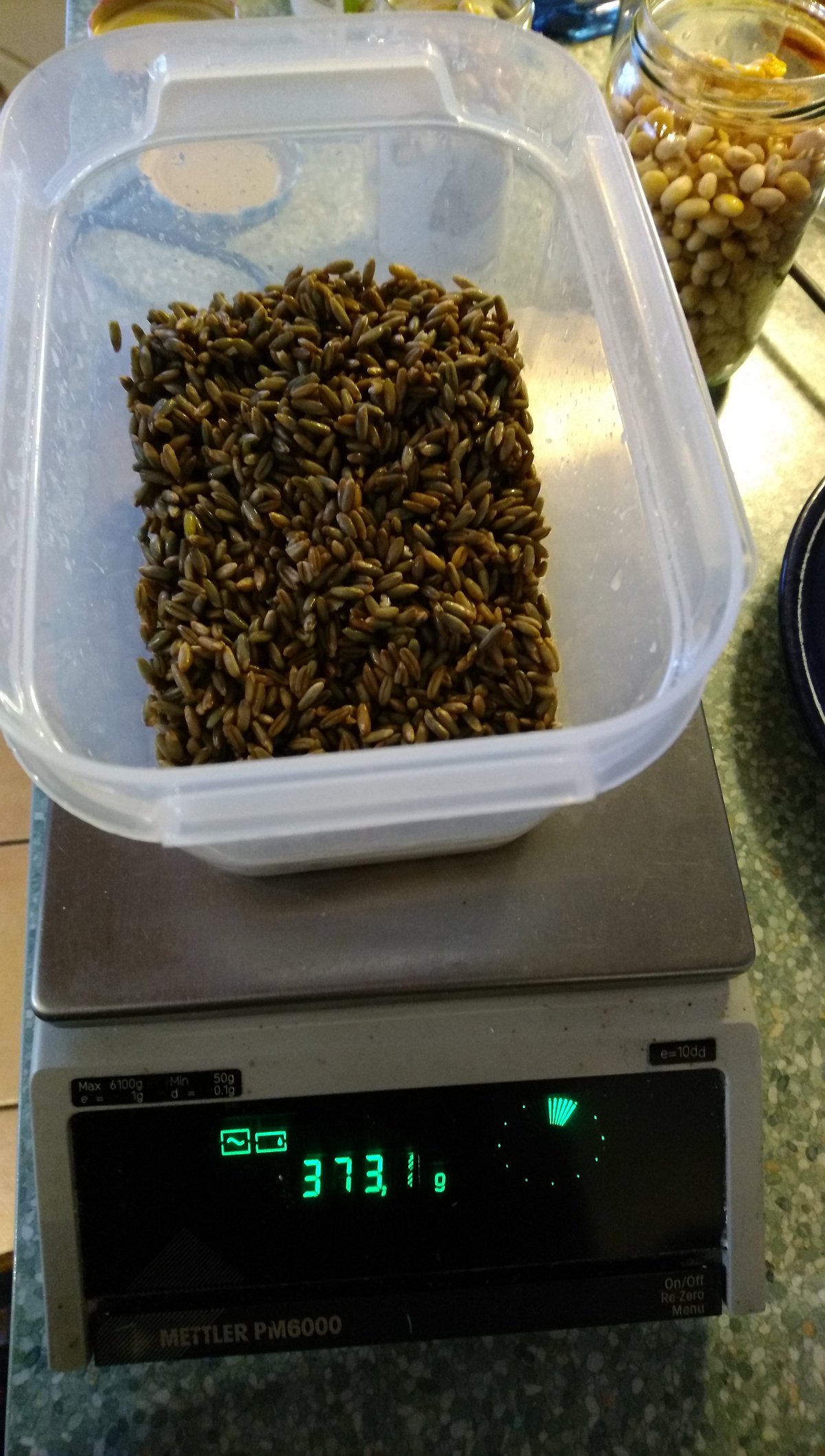 Es hat sich ein bisserl was getan. Am 26.01 hab ich die Körner abgetropft und nochmals gewogen, um die aufgenommende Wassermenge zu ermitteln:
