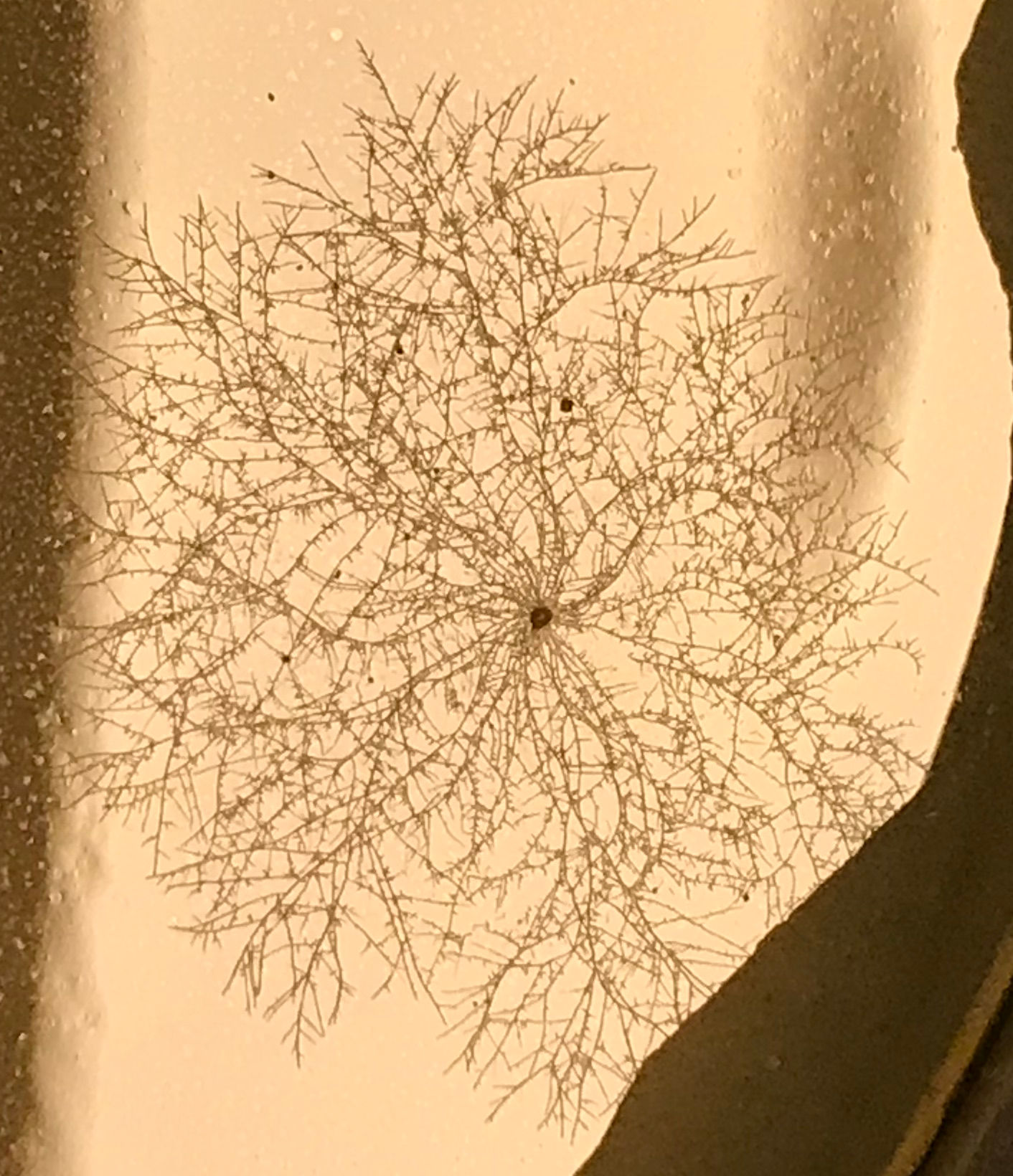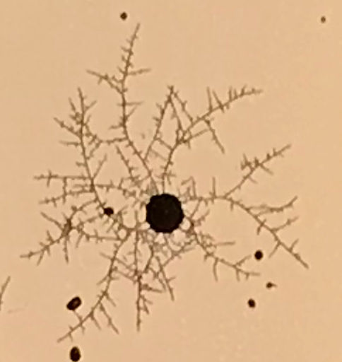 Ist übrigens normales Malz-Agar mit 20g Malz/L und 25g AGAR/L ... aus getrockneten Morcheln, von denen ich seitlich was runtergekratz habe, die Klumpen in der Mitte der frischen Myzele sind also Stückchen mit mehreren Sporen. Wenn ich mir so ein einzelnen Stückchen unterm Mikroskop anschaue, sind da bestimmt 100 Sporen dran.