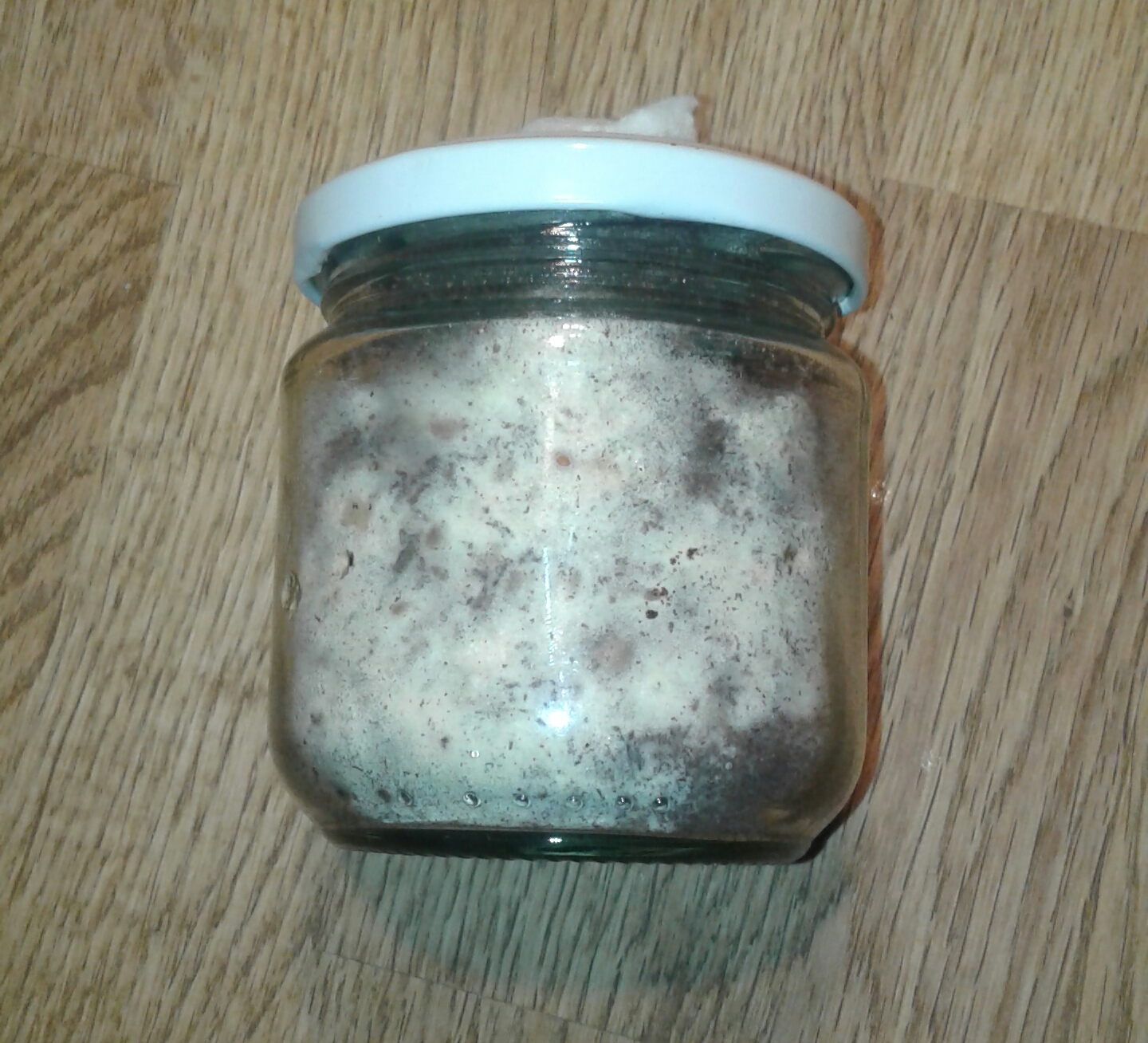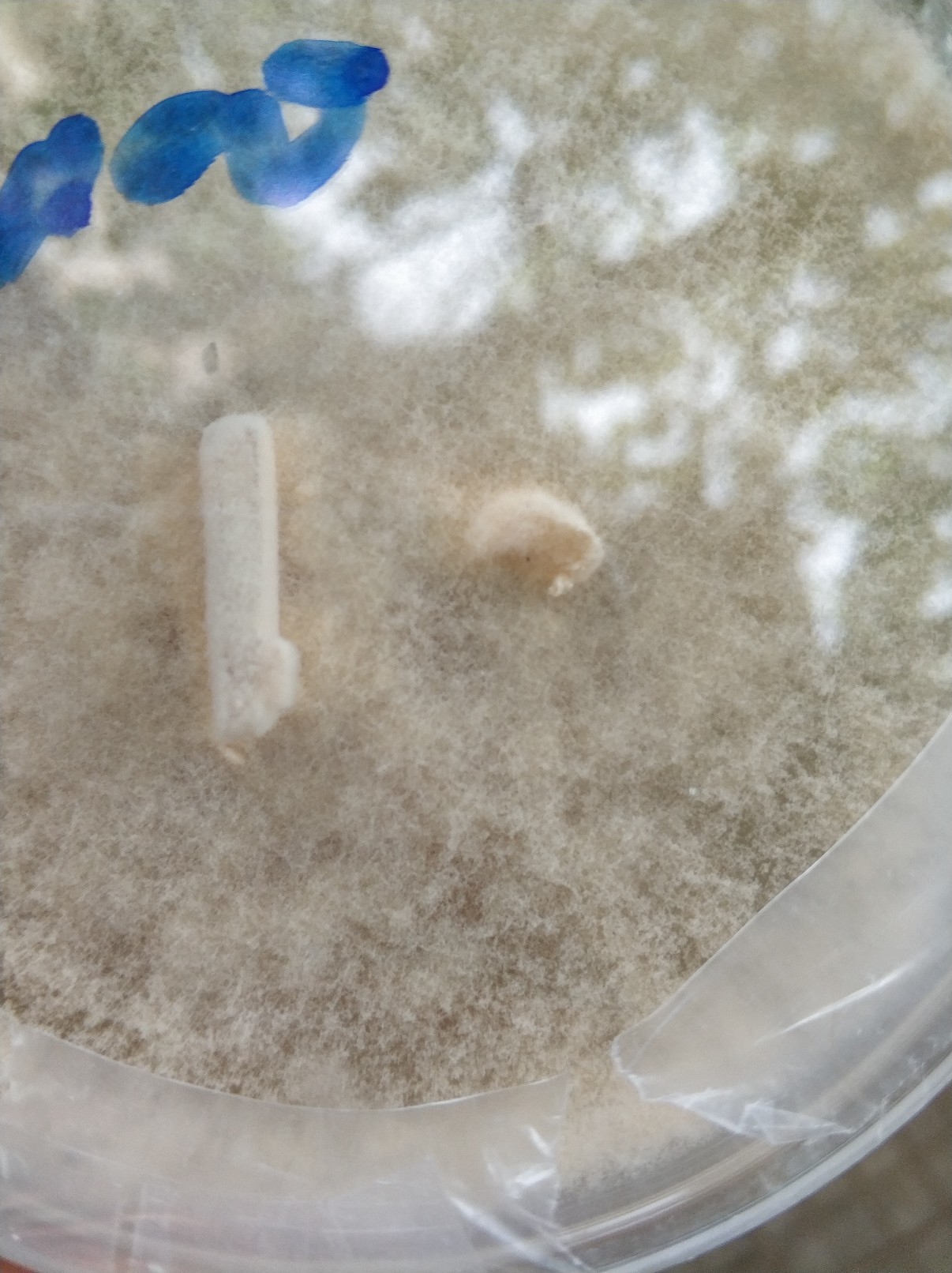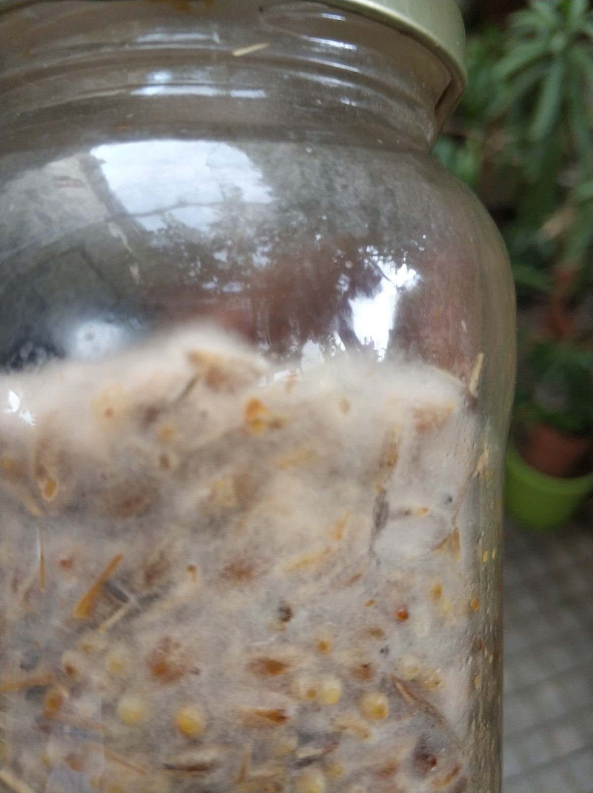 (hatte noch 2 Gläser. Eins mit nur Weizen... Das wächst auch. und eins mit Weizen und kalk... Das ist tot) mein porling kommt von einem alten Birnbaum.