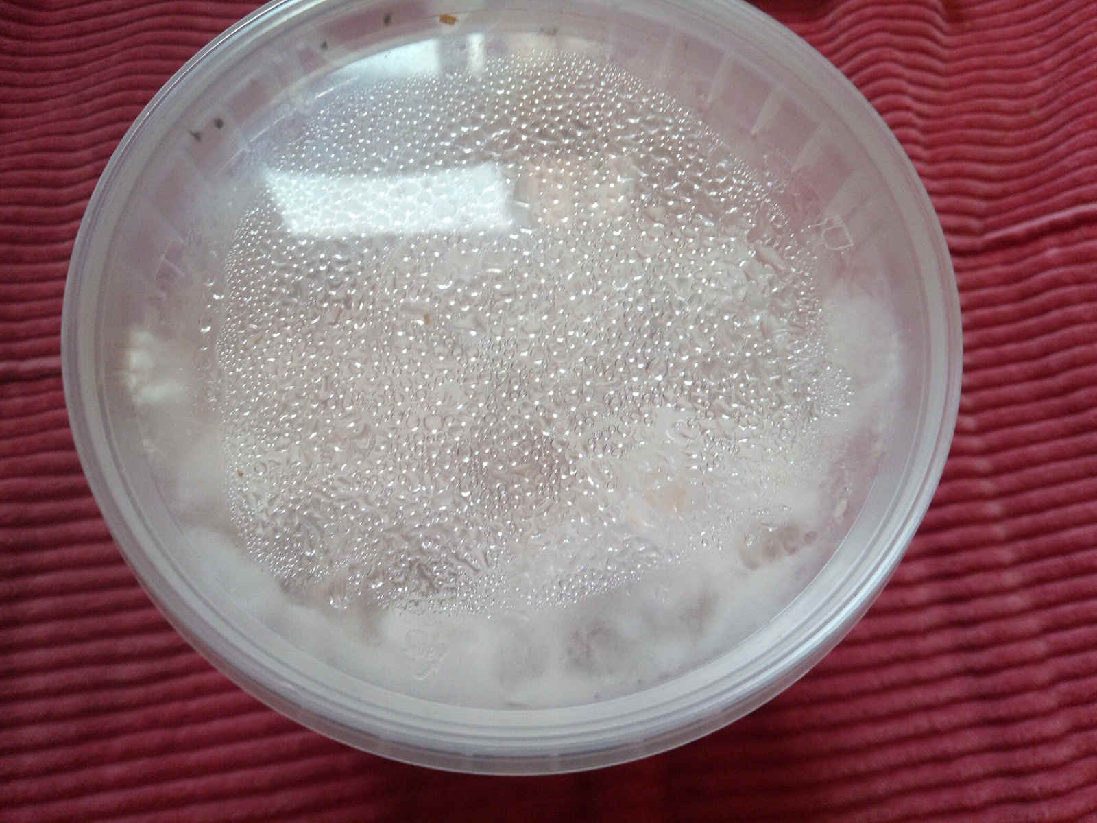 Ich hab die Becher/Eimer zum Fruchten in einer Ikea Plastikbox mit etwas Wasser am Boden. Becher ohne Deckel, Plastikbox geschlossen, mit regelmäßigem "Durchlüften".