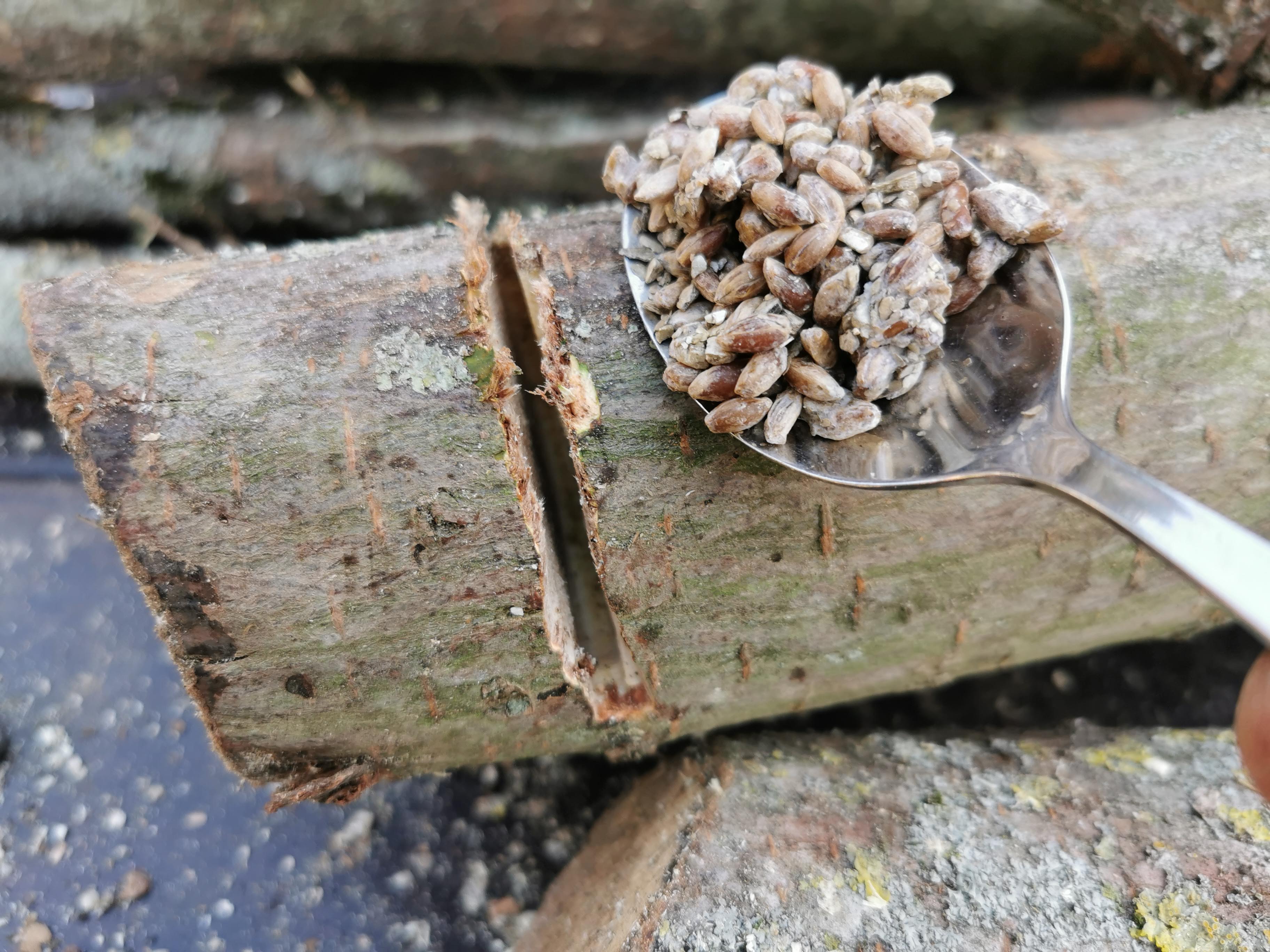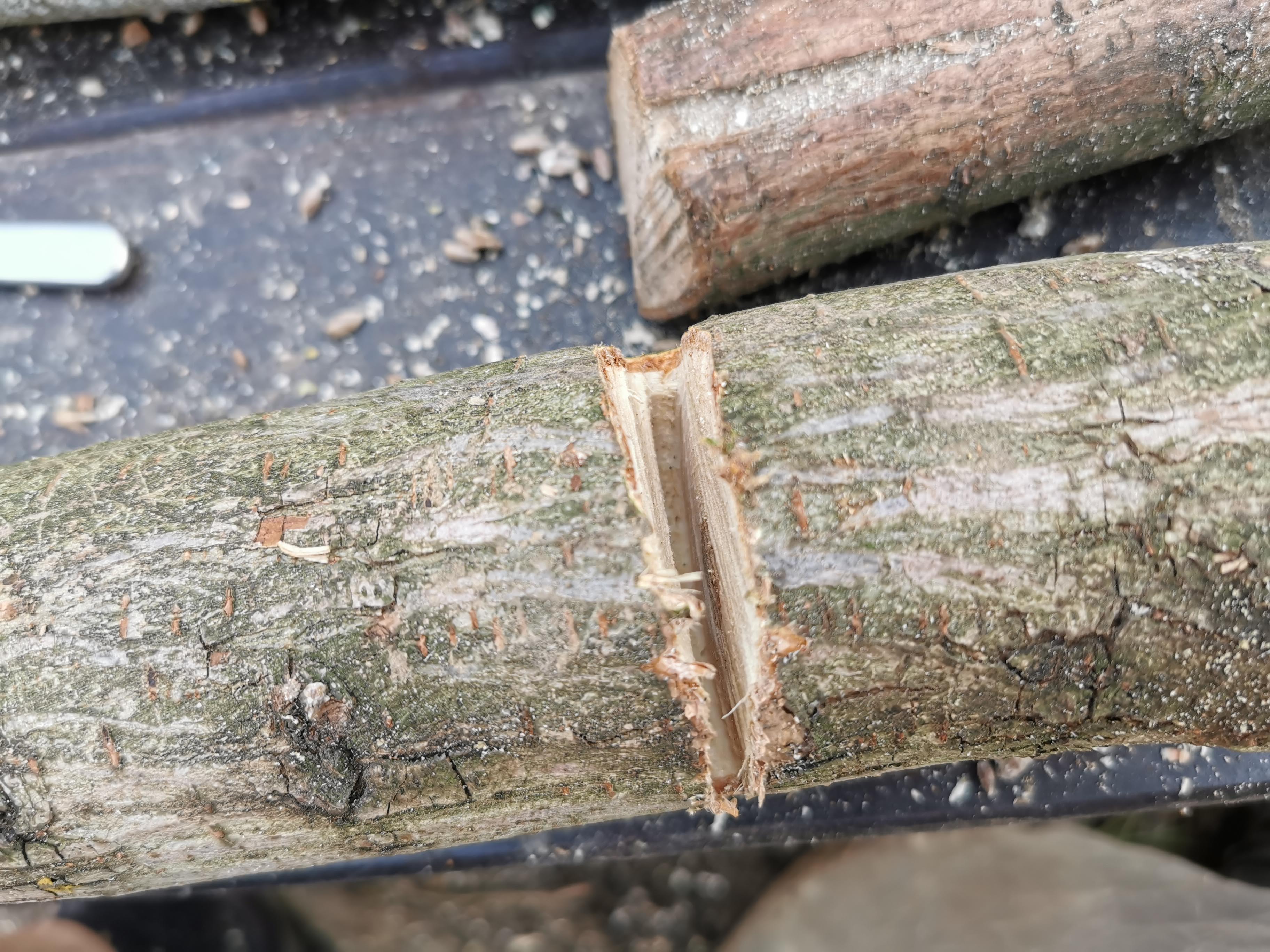 Die beiden Holzschichten mit der Brut dazwischen dann z.B mit Frischhaltefolie umwickeln, so dass es zusammenhält.