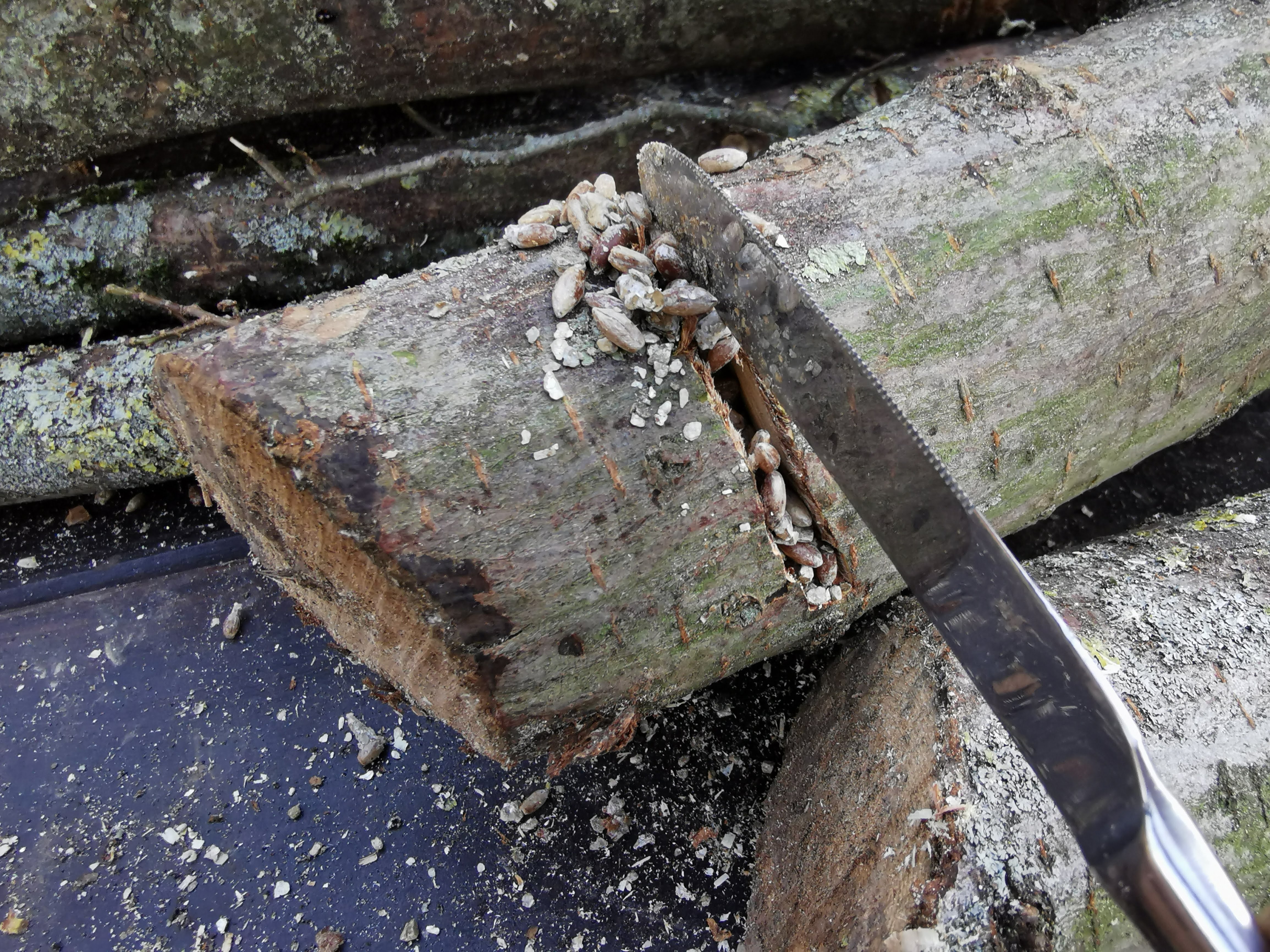 Kräuterseitling ist recht lecker, aber würde ich nicht auf der Fichte probieren wollen. Der Samtfußrübling ist schon gut und außerdem schon bestellt. Und ja, zum Beimpfen werde ich eine frische Scheibe abschneiden, Sägemehlsubstrat (ich war mal abenteuerlich) drauf und dann die Baumscheibe wieder oben drauf und festnageln. Zum Schutz vor Tierfraß etc noch Paketband drumherum. Und dann, weil der Stumpf ohne Baum drüber dummerweise voll in der Sonne steht, werde ich mir da einen "Tisch" drüber basteln müssen zum Abschatten.