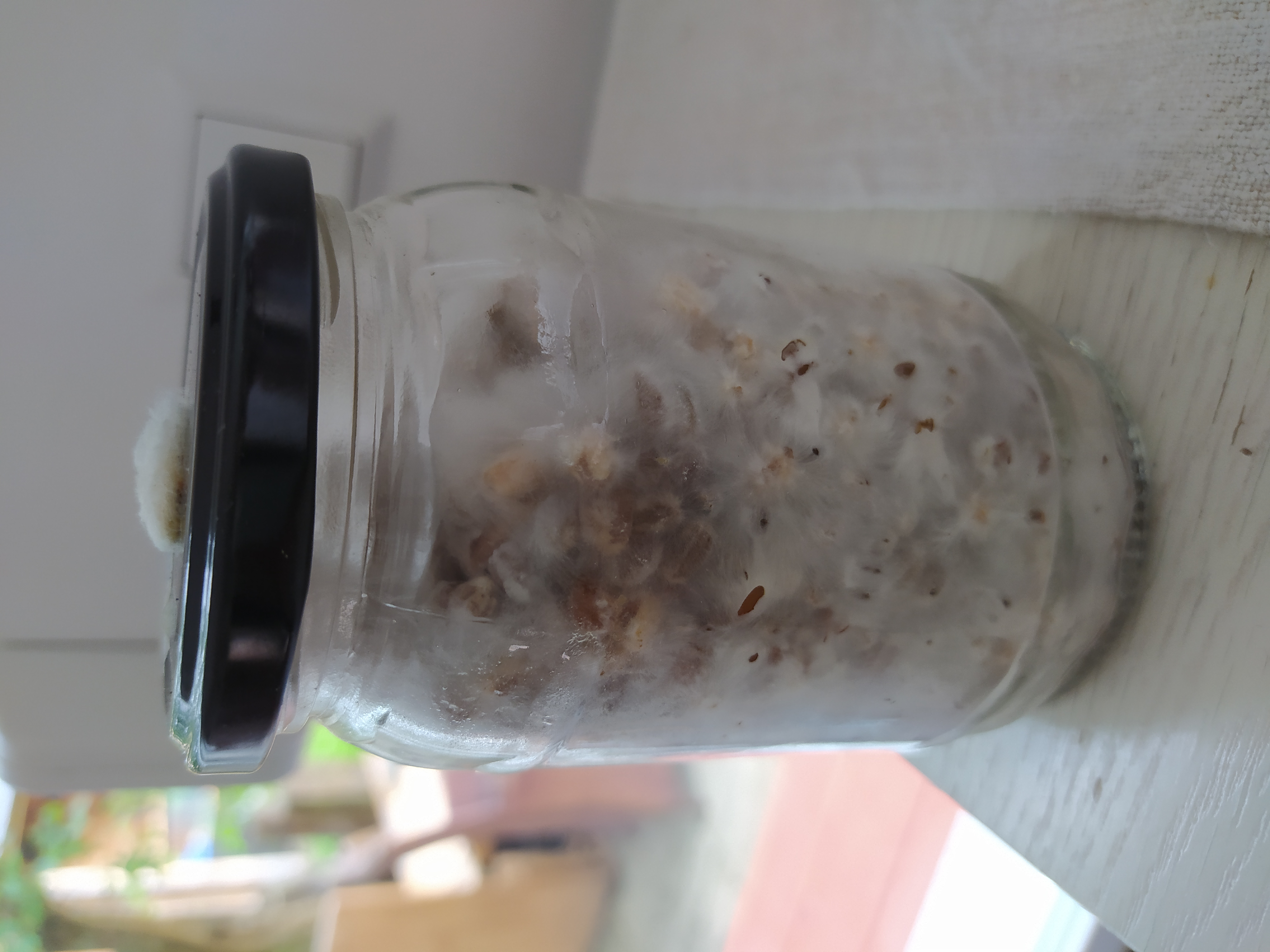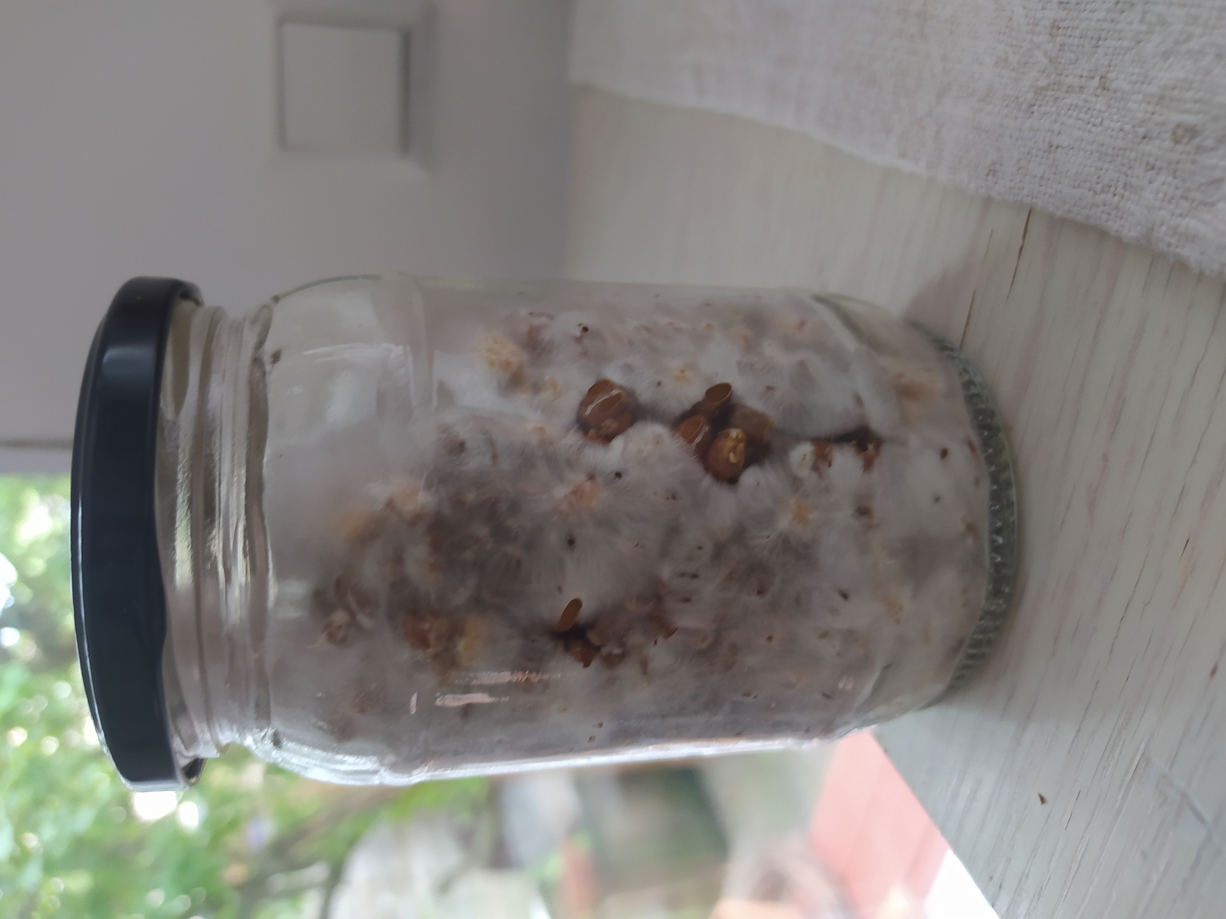 Als ich gerade alles geöffnet habe, bemerke ich das der Dampf unter die Alufolie eingedrungen ist und teilweise kleine Tröpfchen hintergelassen hat. Die Watte ist auch leicht nass. In der Gläser sind die Weizen auch sichttbar nass.