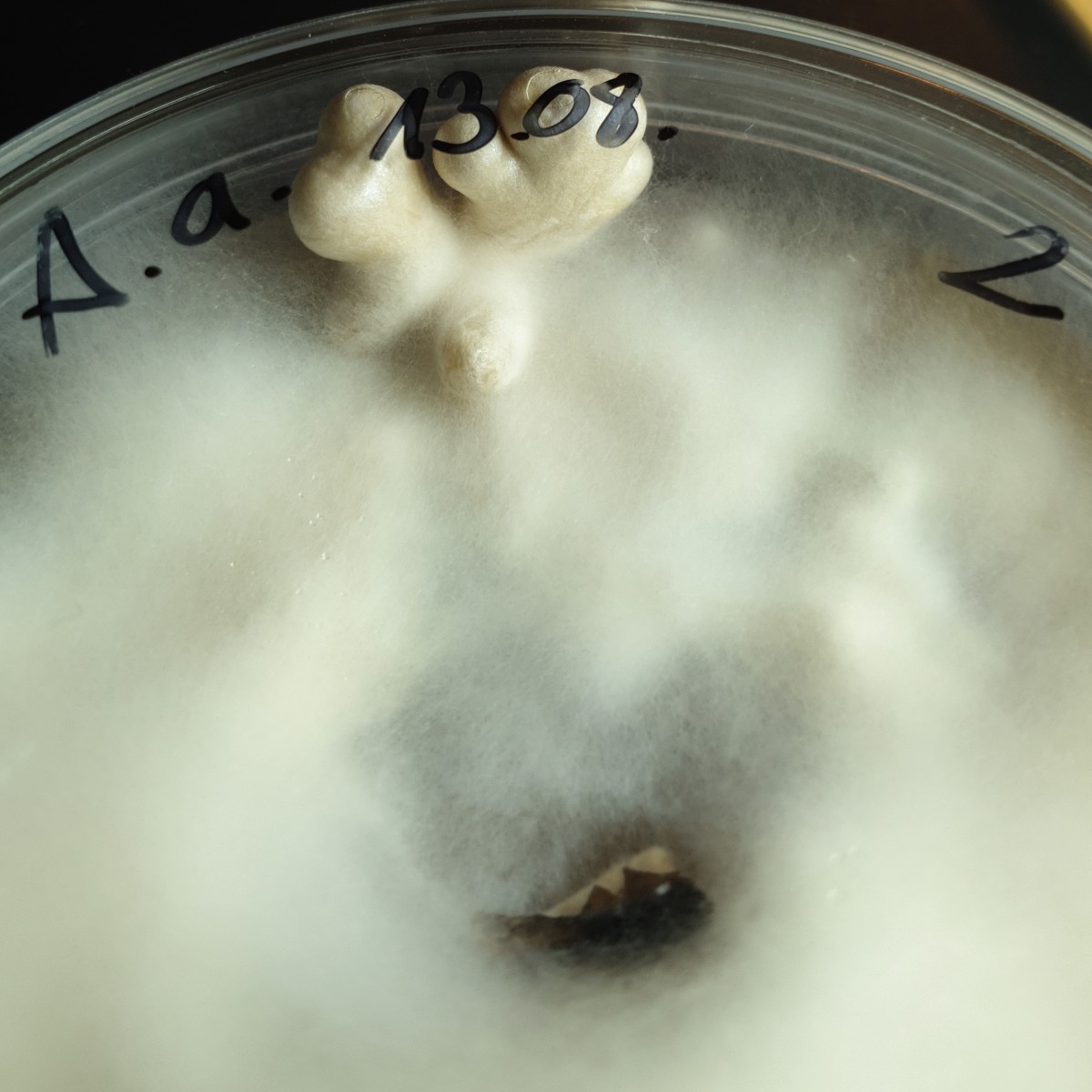 Bei einem Klonversuch auf Substrat wuchs nur aus Hutstücken Myzel, bei welchem das Wachstum aber immer wieder stockte. Letztendlich fiel es dem Köpfchenschimmel zum Opfer.