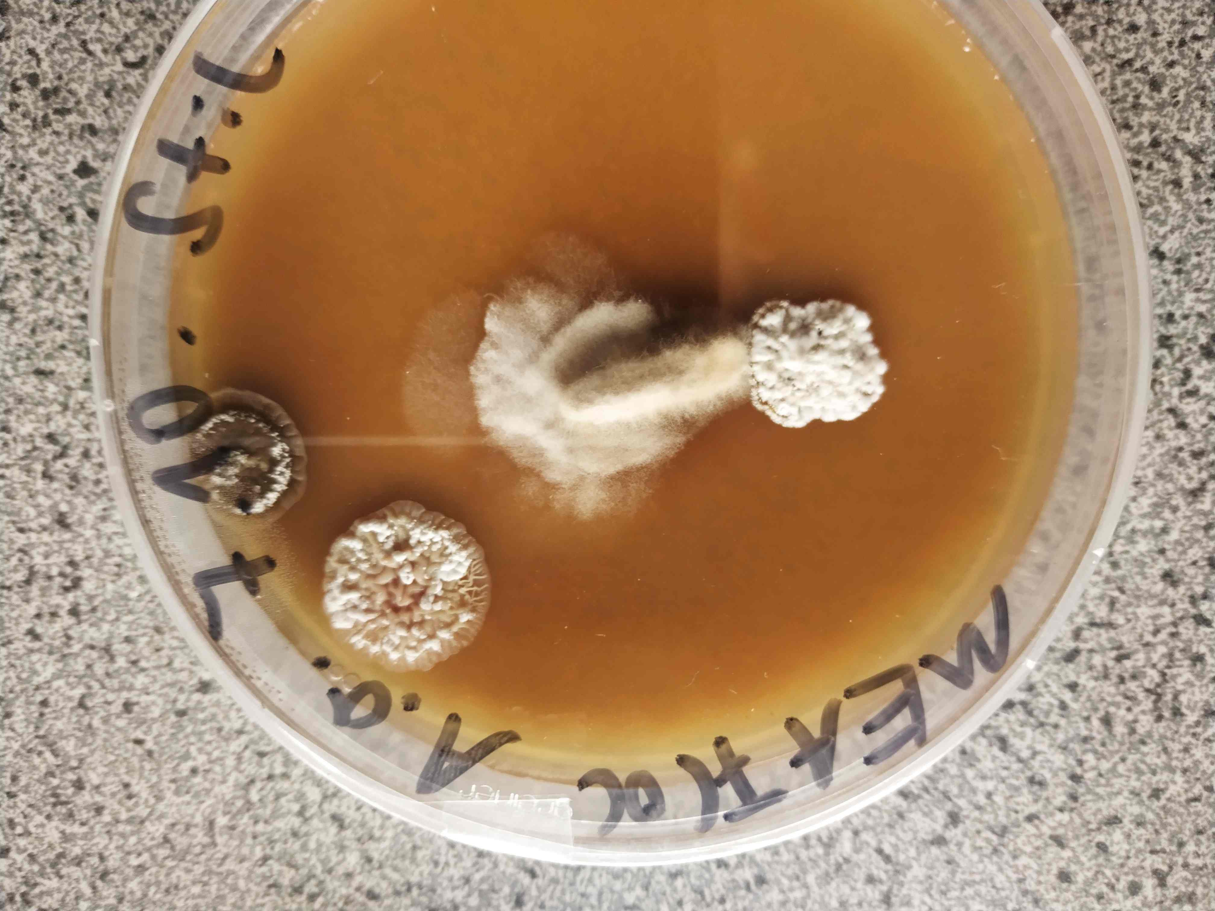 Zwischendurch hatte ich aber mal testweise auf stinknormalen MEYA überimft und konnte feststellen, dass das Myzel zwar schwächer und weniger dicht war, aber es wuchs. Inzwischen kam es selbst dort zu stärkerem Wachstum und Knotenbildung, also kann man wohl davon ausgehen, dass hier doch kein besonderer Aufwand nötig ist.