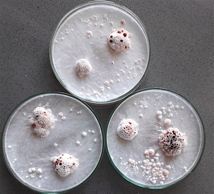 Oder wir vergleichen das Myzel einer Art auf verschiedenen Nährböden.