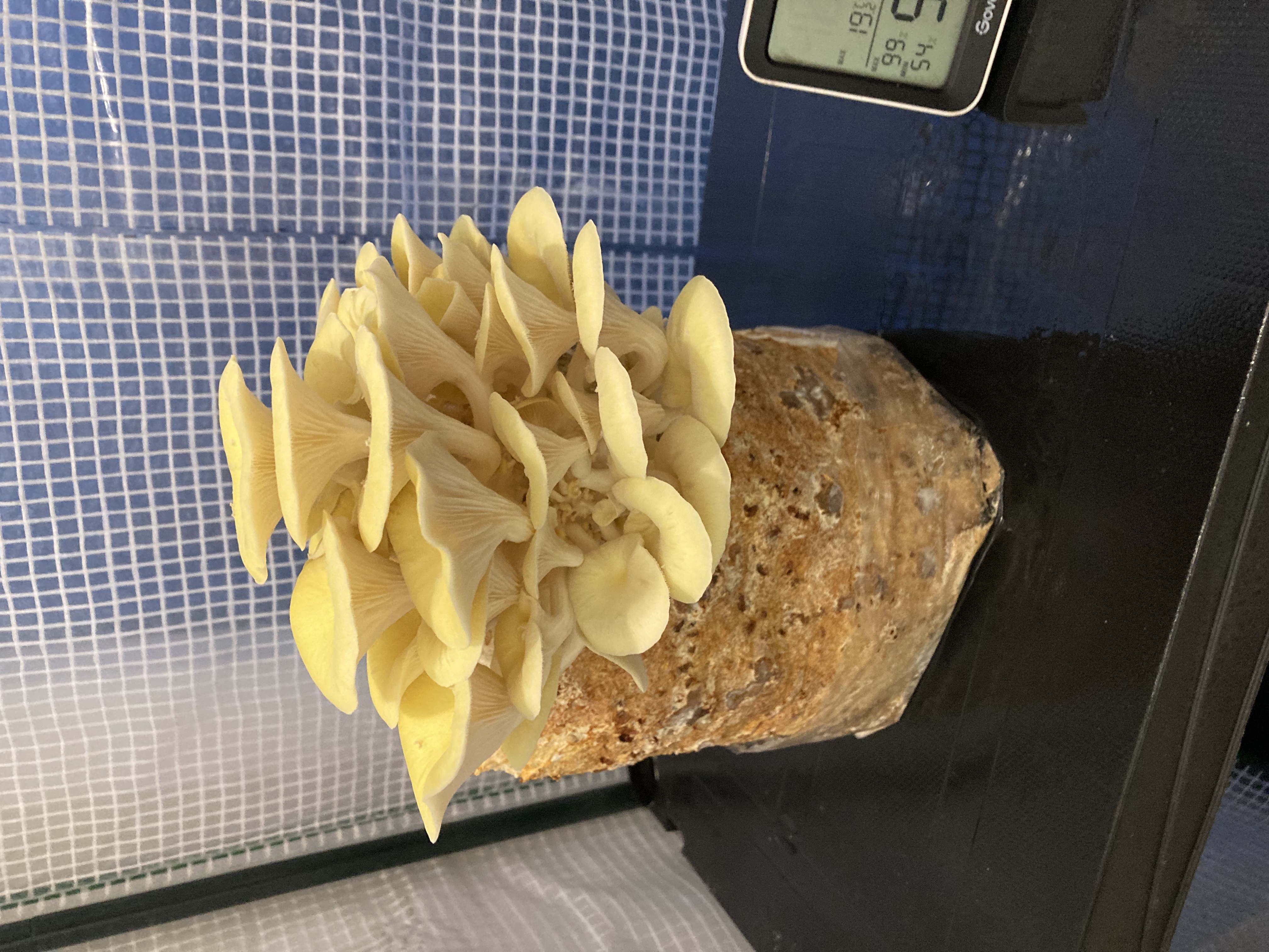 Naja, nicht ganz. Ich hab mit einer fertigen Championbox angefangen. Aber die Zitronenseitinge sind meine erste Zucht von Flüssigmyzel zur Körnerbrut, zu beimpfen Strohpellets und nun zur ersten Pilzfruch.