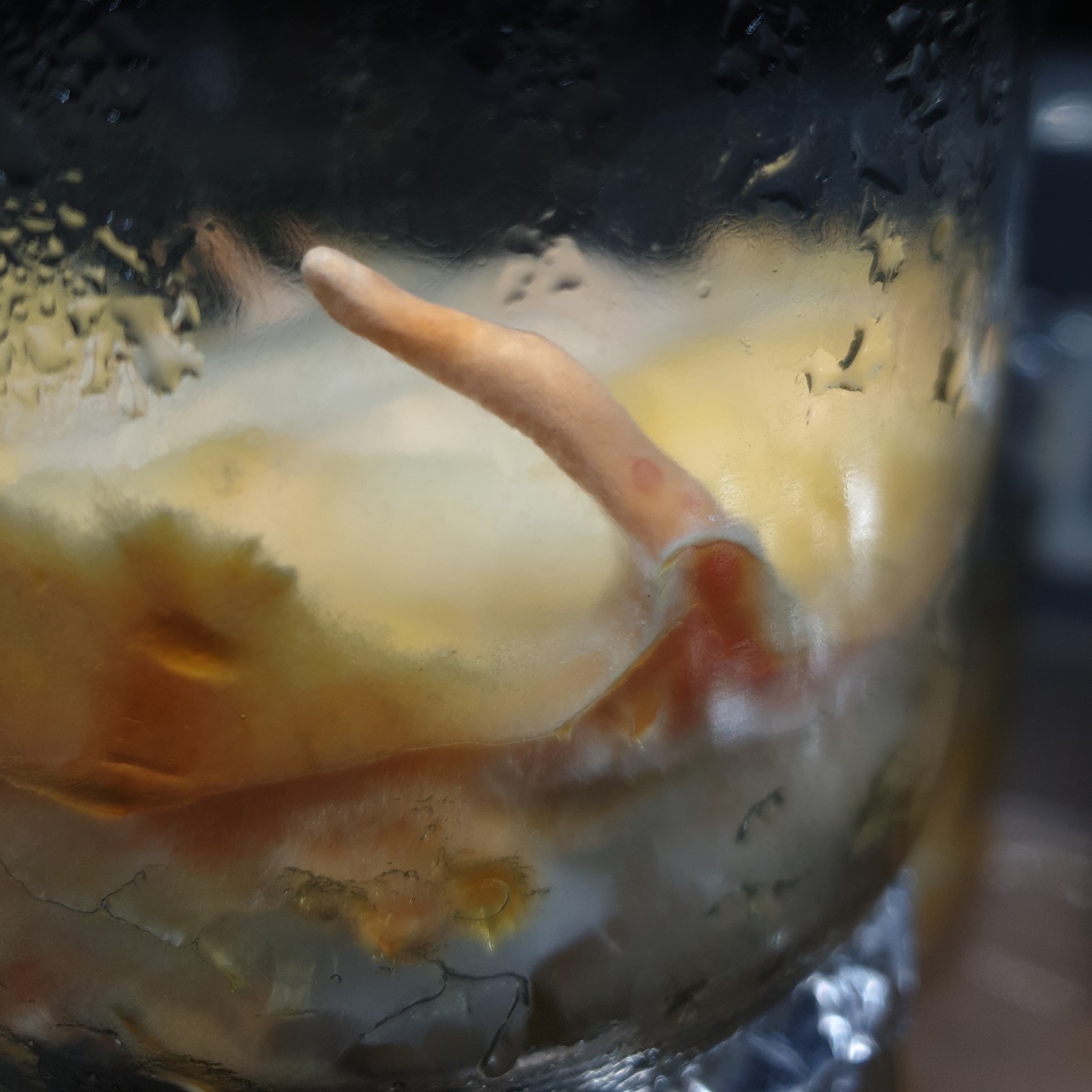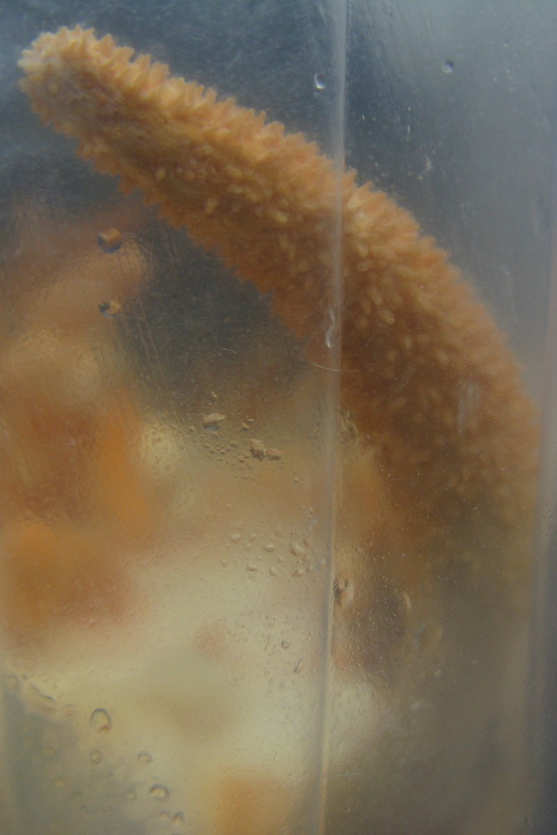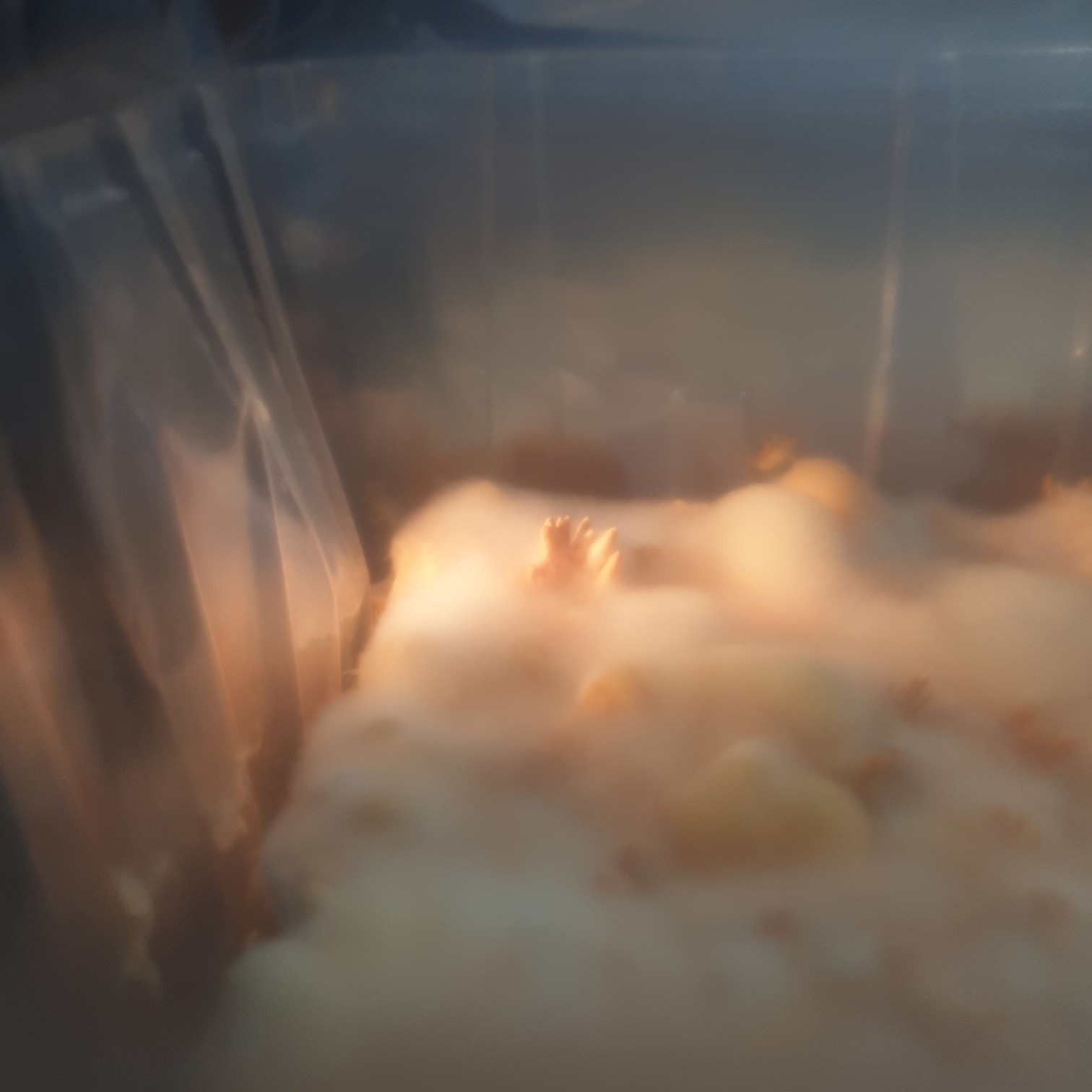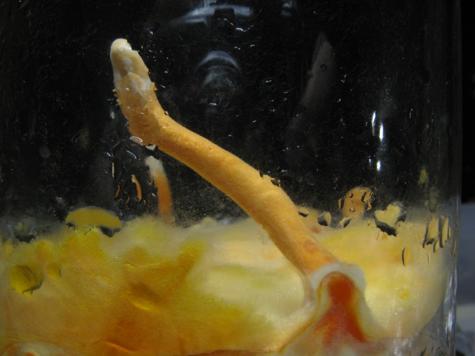Wobei ich mir natürlich anfangs mehr erhofft hatte. Naja, statt der fetten Ernte warte ich jetzt darauf, dass eine der Keulen Warzen bekommt und Sporen bildet, was in einem Glas scheinbar gerade passiert.