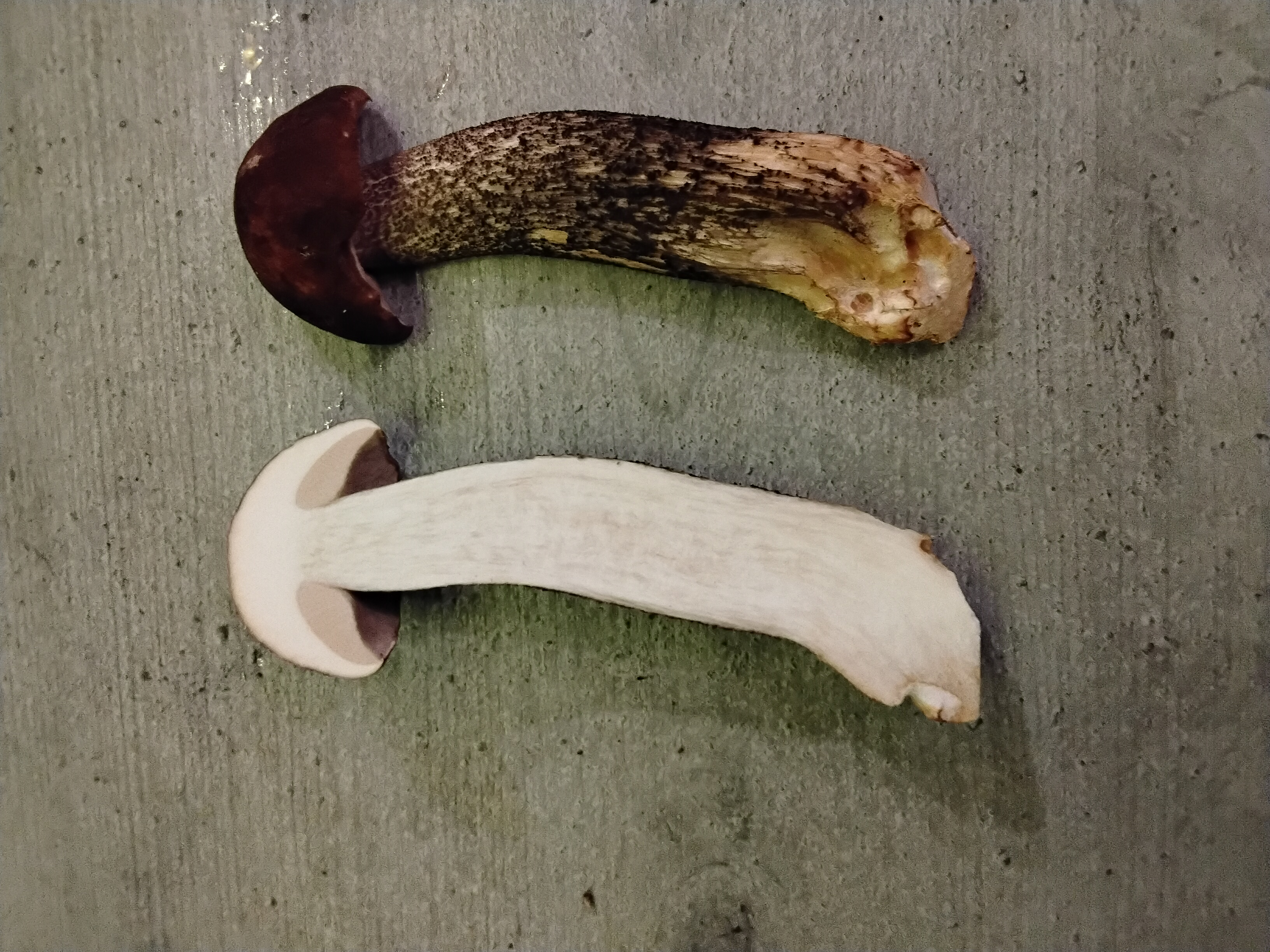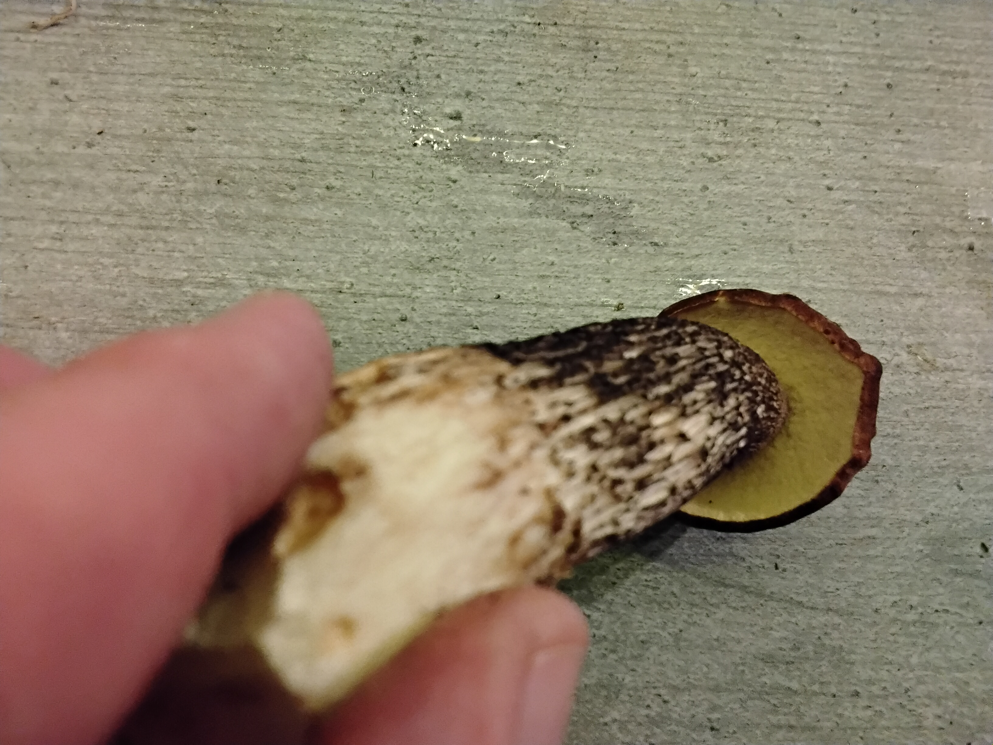 Beim Anschnitt auch nach mehreren Minuten keine Verfärbung oder vielleicht ganz leicht grauend am Stiel (möglicherweise bilde ich mir das auch nur ein).