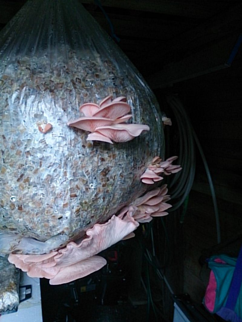 Hier kann man schön sehen, das der Ulmenseitling und der Taubenblaue Seitling um einiges schneller wachsen als der Kräuterseitling