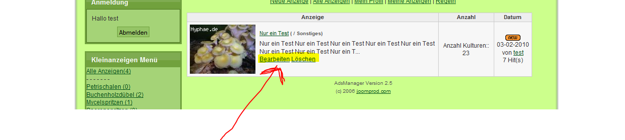 war die erste anzeige auf der seite , vielleicht war n update dazwischen was das irgendwie geändert hat , jedenfalls kann ich die Anzeige weder ändern noch löschen.