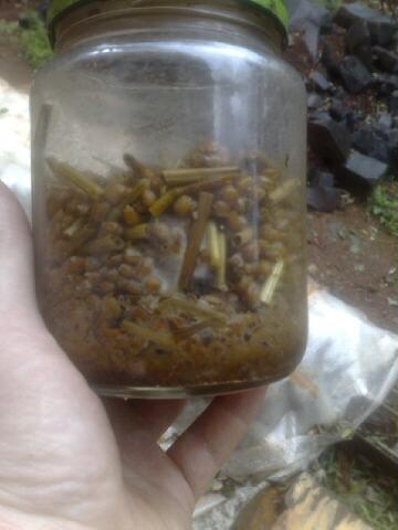 und auch drei gläser mit körnerbrut, eins davon aber mit weizenstroh stücken gemischt