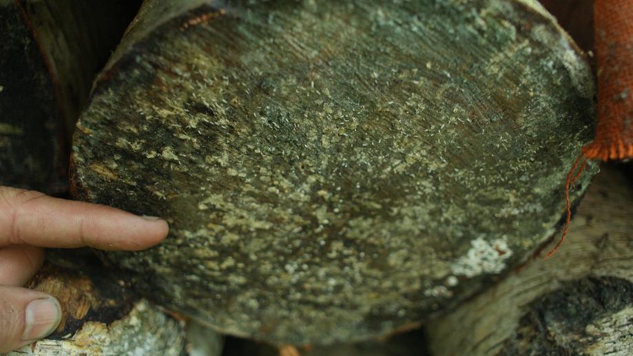 Schimmel auf der Oberfläche von Baumholz ist unbedenklich, weil Schimmel ein Oberflächenpilz ist, welcher nur in die Holzoberfläche ca. 3 mm eindringt. Der Kulturpilz kann sich im innern des Stammes trotzdem verbreiten und verdrängt später den Schimmel. Dies gilt wenn es dann tatsächlich Schimmel ist und kein anderer Pilz.