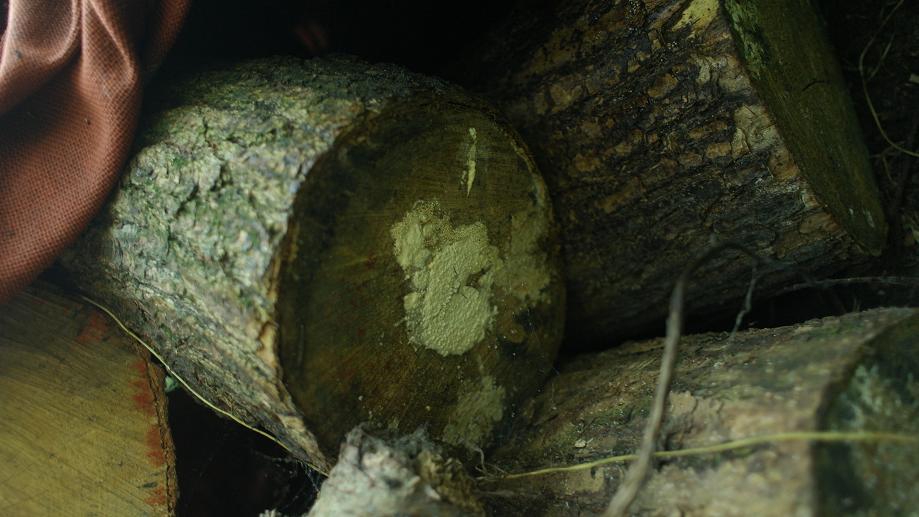 Der Stamm war wohl, zum Zeitpunkt des Eingrabens, nur teilweise mit Stockschwämmchenmycel besiedelt.