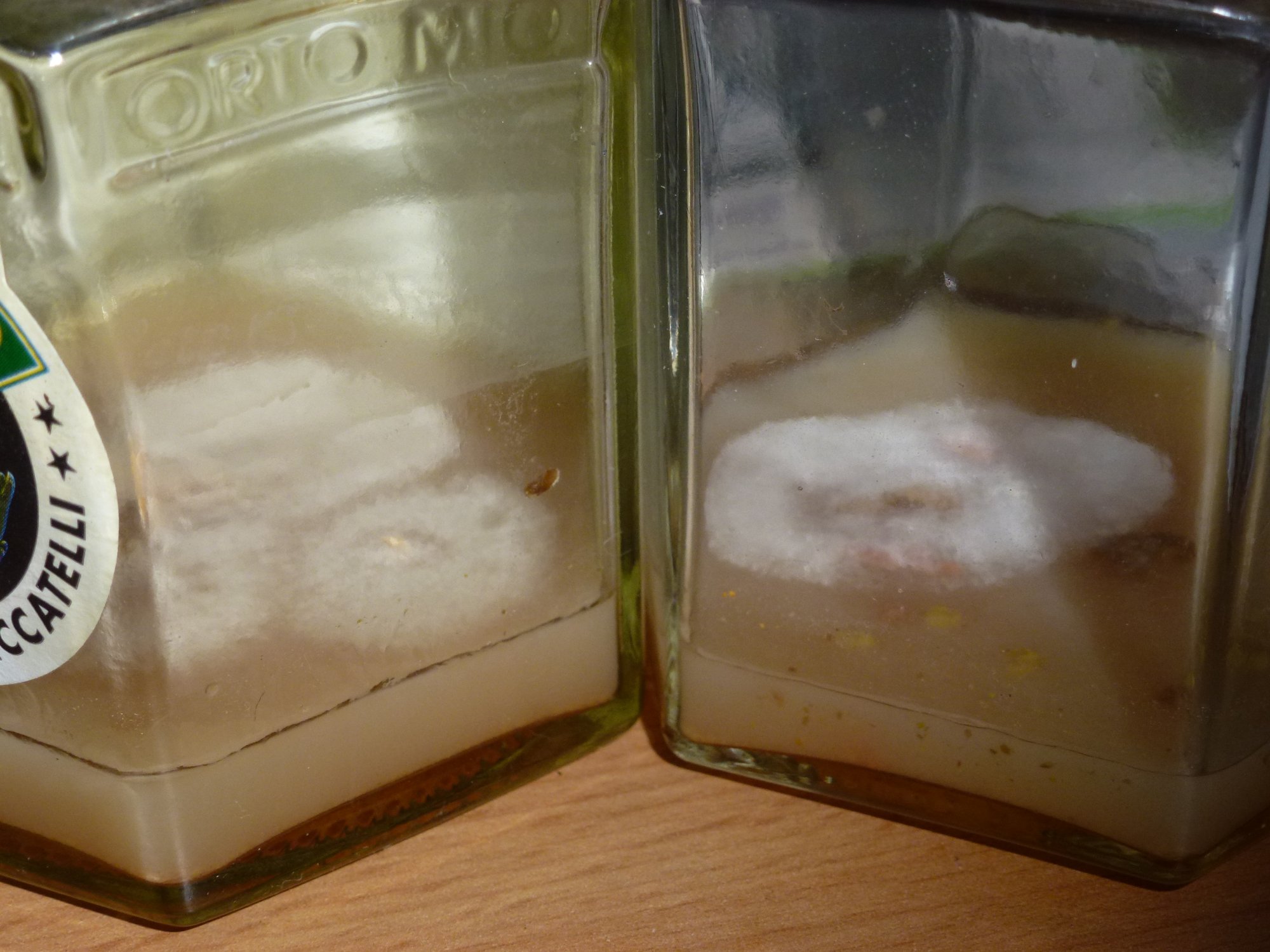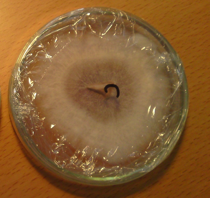 Ich hab frisch angefangen mit der Pilzzüchtung. Hab im Einmachglas (Petrischalen sind mittlerweile schon unterwegs) Trockenfutter-Agar zubereitet und ein Stück von einem Champignon reingelegt. Ergebniss, siehe Foto. (ca. 1 Woche bei 20°C)