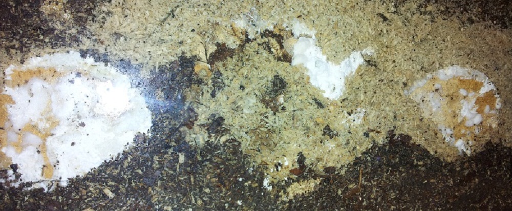 Dieser befindet sich in einem Terrarium und ist weißfaul, also eher weicher von der Konsistenz her.