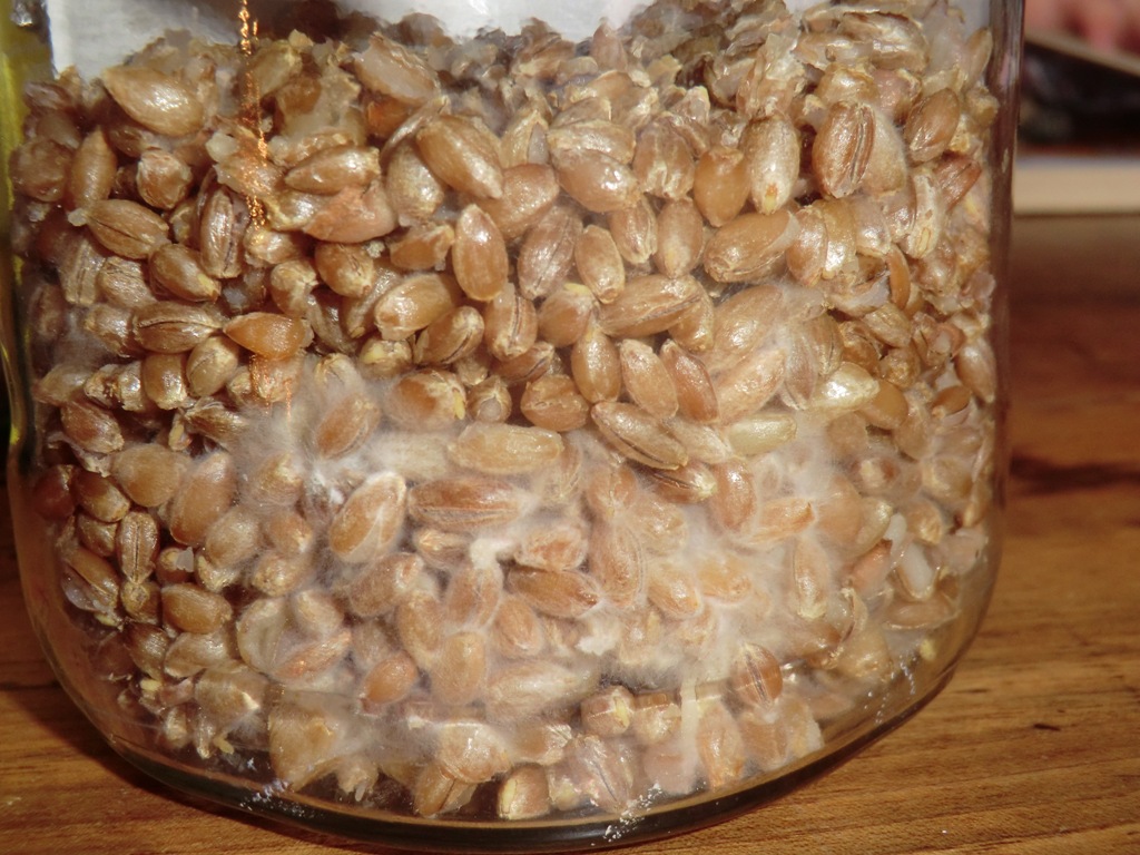 Bei einer Roggenbrut haben sich so kleine gelbe "Areas" gebildet. Doch mittlerweile treibt da das Myzel mehr und mehr rein. Vielleicht war es zu feucht?
