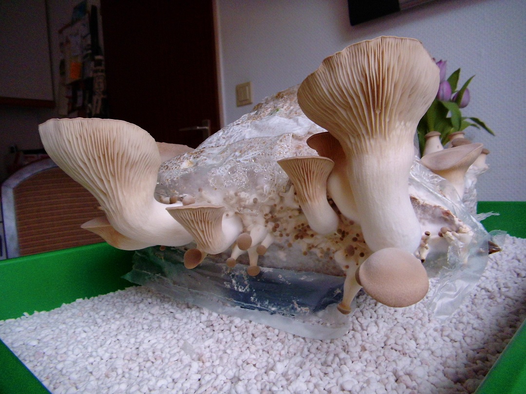 Ich habe vor einiger Zeit Mini-Kräuterseitlinge aus Korea auf Pappe geklont und dann nach und nach