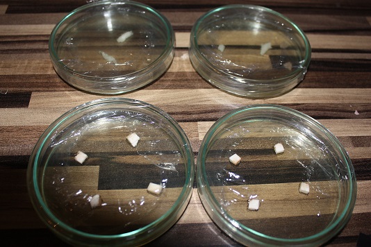 aus den Petrischalen ist leider nichts geworden. Falsches "Agar" und die Pilzstücke sind förmlich ersoffen