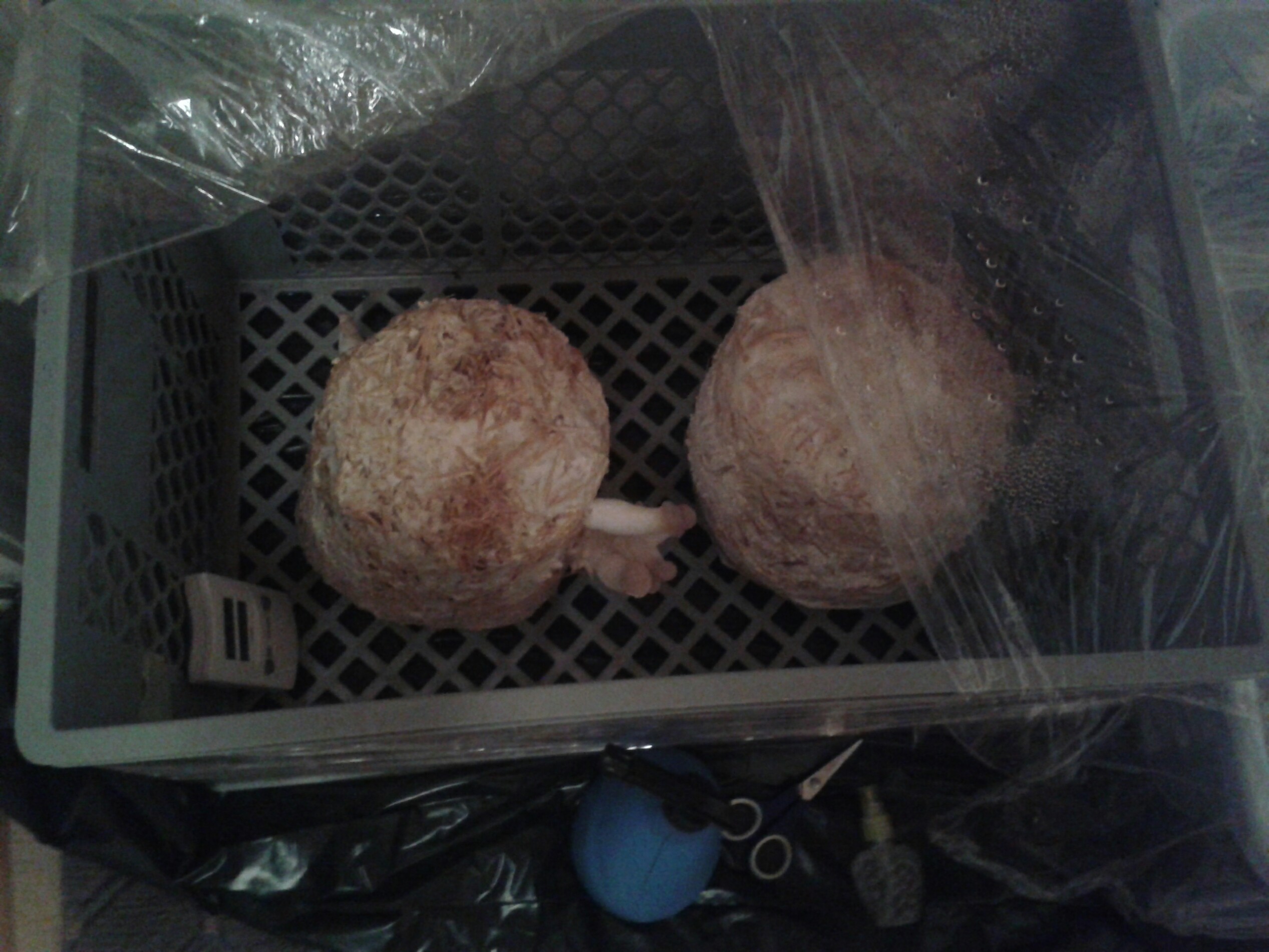 Berichte mir mal bitte wann aus deinen Primordien im weißen Eimer Pilze geworden sind. Die sehen ja ähnlich aus wie meine.