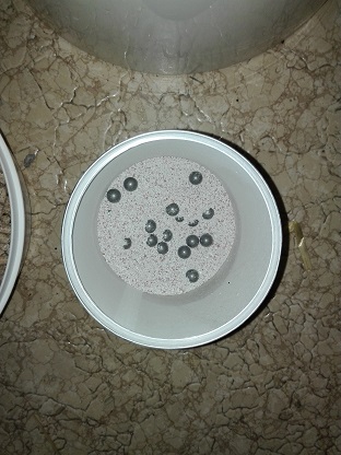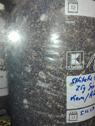 Das sind Holzpellets 325g in Verbindung mit Kokosphasern 310g, ich bin bei 10g Kalk ( Eierschale) und 25g Gips geblieben. DAs ganze mit 2,3l gekochtem Wasser und ca. 350g Körnerbrut. Der Pilz ist aus dem LAden Edeka, ich wollt einfach mal schauen ob dat jet