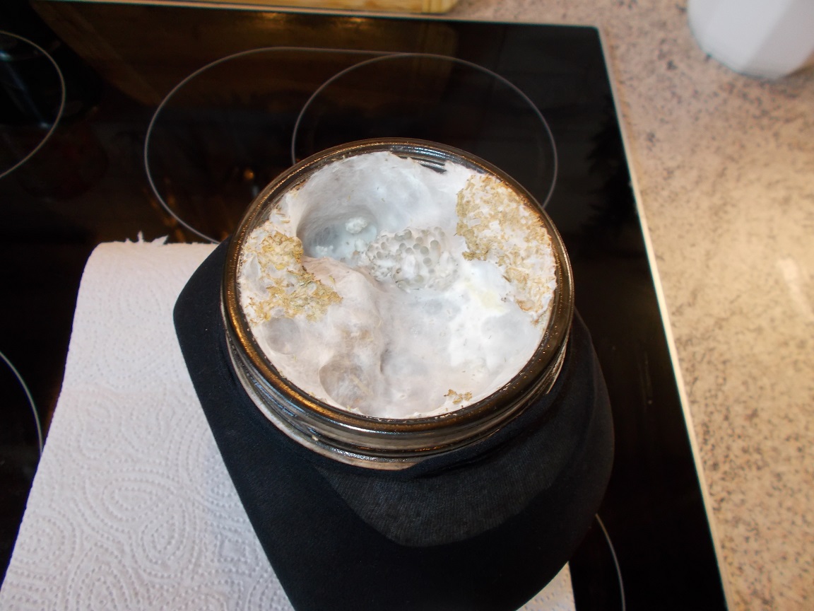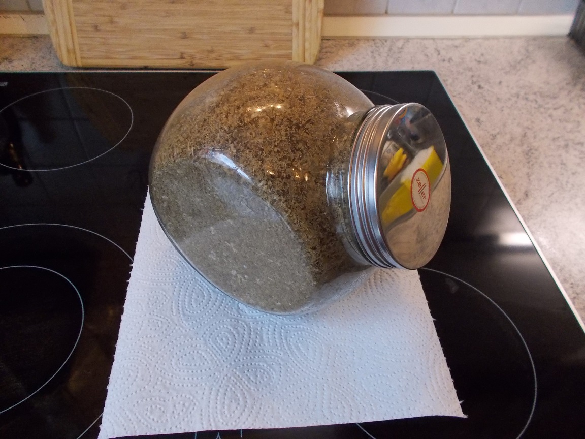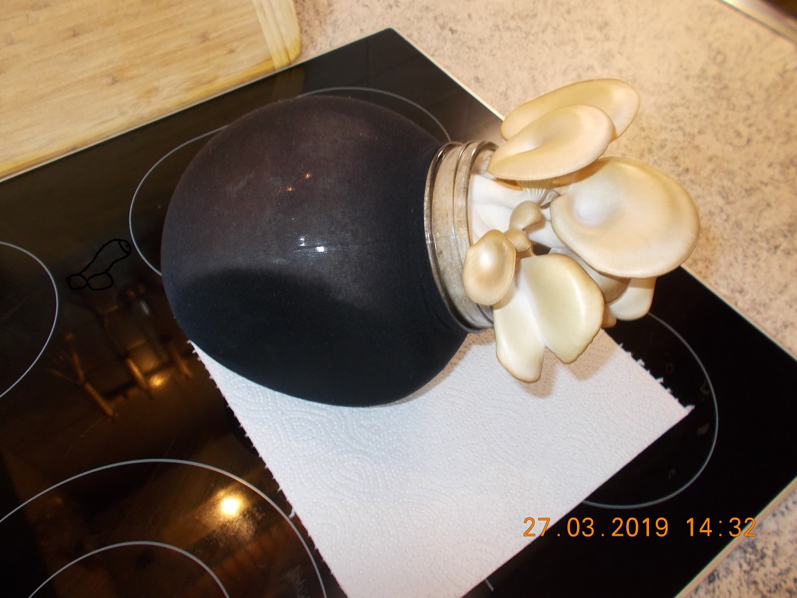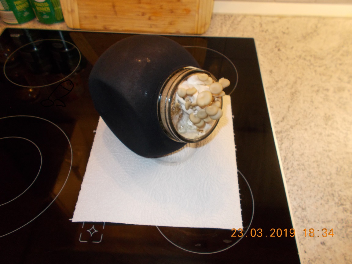 das mit dem Bonbon Glas sieht schick aus und die Austern können schön seitlich wachsen wie es sich ja für die Seitlinge gehört...